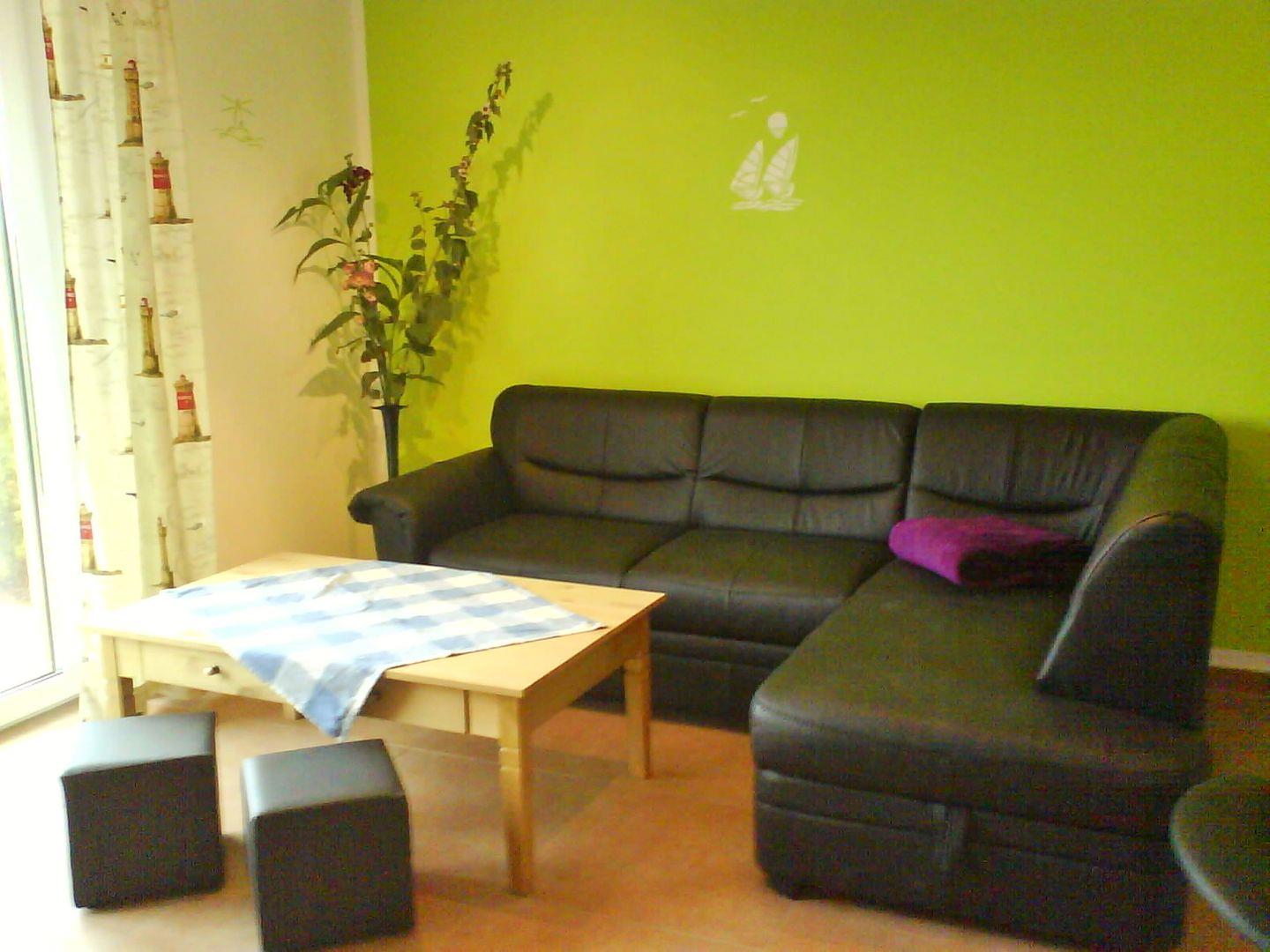 Die 3-Zimmer-Wohnung für 6 Personen erstreckt sich über zwei Etagen mit Wohnbereich, offener Küche und Bad im Erdgeschoß sowie den beiden Schlafräumen im 1. OG.