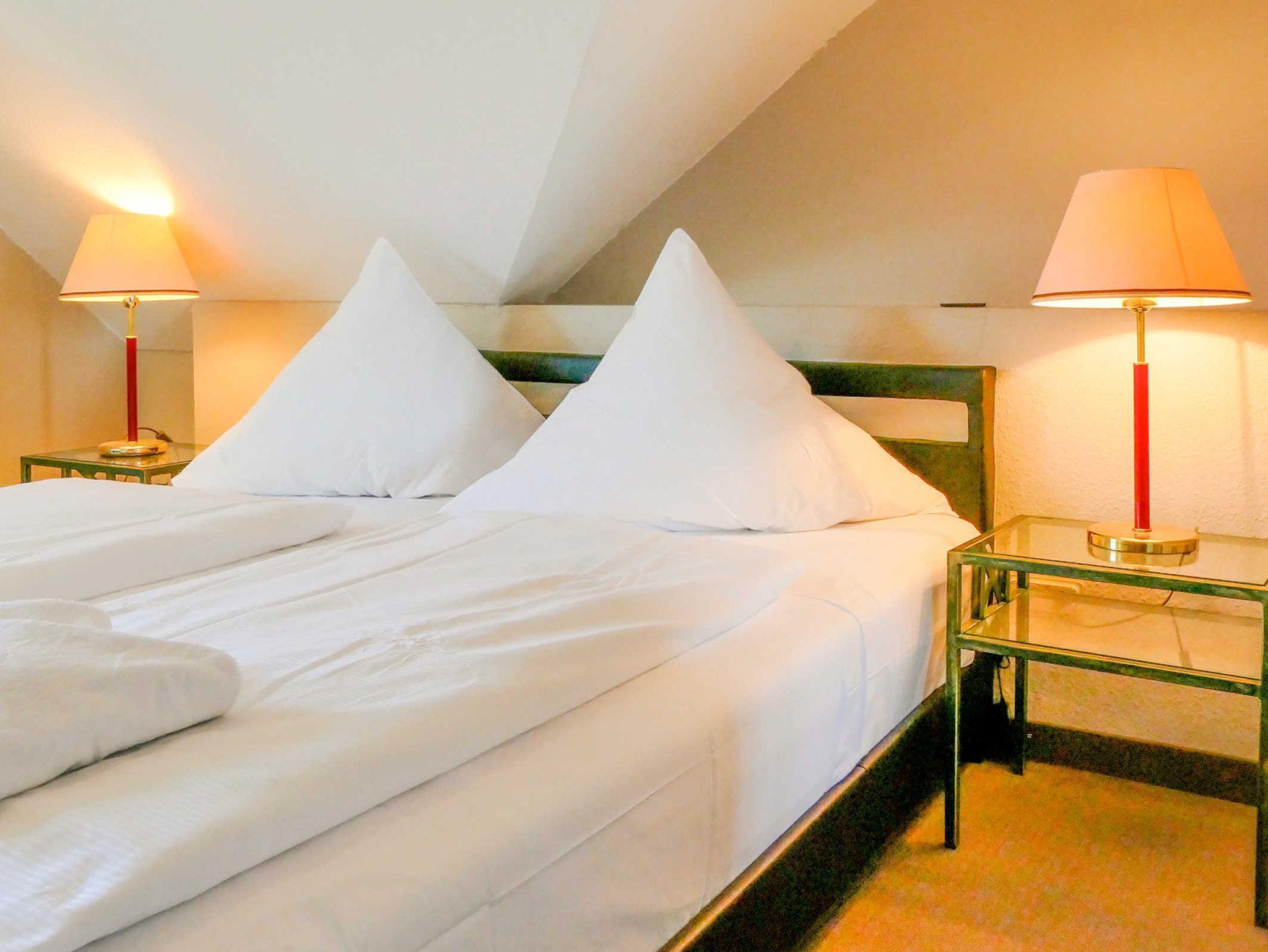 ? Ein separates Schlafzimmer mit Doppelbett, je ein Nachttisch und Leselampe,