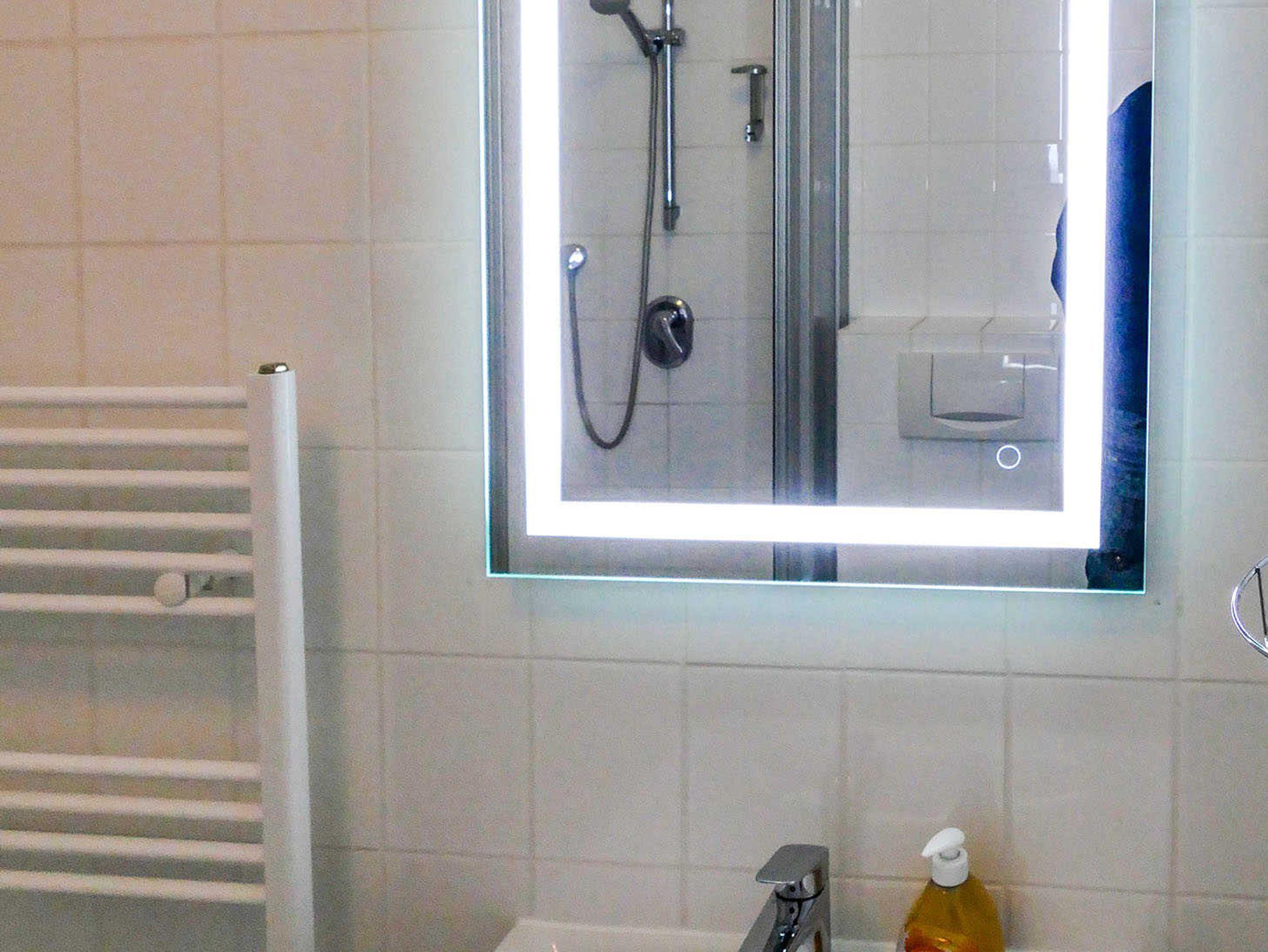 ? Das kleine Bad ist ausgestattet mit Dusche/ WC und Fön .