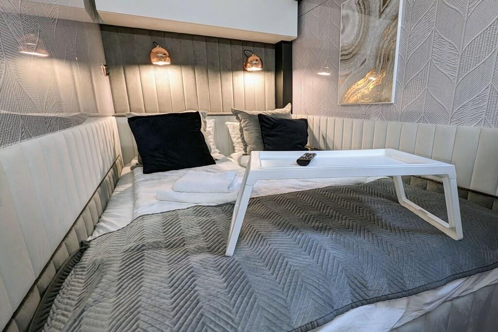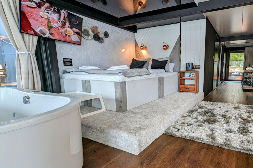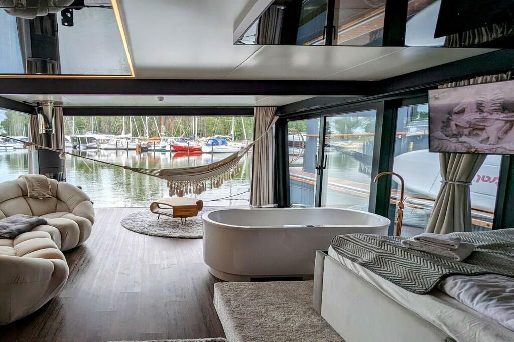 Tættere på vandet kan man ikke komme på ferie. Den idylliske og i øjeblikket voksende lille havn på Jasmund Bodden – Martinshafen – er hjemsted for en unik, permanent fortøjet husbåd med en suite-lignende atmosfære. Fra sengen kan man gennem det store panoramavindue kigge over et spabad direkte ned i havnen og nyde en uovertruffen udsigt over natur og fugleliv. En massagestol og en pejs giver en særlig wellnessoplevelse. En lille tør sauna og to badeværelser med store brusere fuldender de luksuriøse faciliteter. En anden, separat kahyt tilbyder et ekstra tilflugtssted. Et køleskab, en vask, en kaffemaskine og en brødrister giver mulighed for selvforplejning. Morgenmad kan bestilles i havnebistroen. Lige rundt om hjørnet inviterer stranden dig til at dyrke vandsport eller blot slappe af og se på bølgerne.