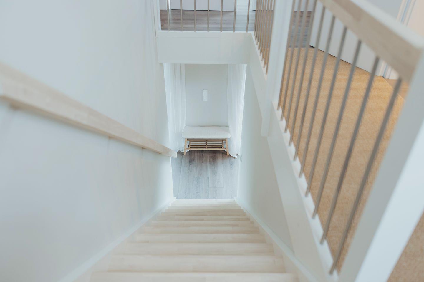 Ausschlafen, kochen, faulenzen: Im geräumigen Familienhaus kommt jeder zu seinem Recht. Die ca. 120 m2 Wohnfläche verteilen sich optimal auf die beiden Etagen. Im Obergeschoss gibt es vier Zimmer, sowie ein Vollbad, das über ein Dachfenster Tageslichtbeleuchtung hat. Die Schlafzimmer mit hochwertigen Boxspringbetten (in den Größen 1,60 x 2,10 Meter, sowie 1,80 x 2,10 Meter) von bester Qualität, laden zum Ausschlafen ein. In den maßgefertigten Einbauschränken finden Sie genügend Stauraum für alle.