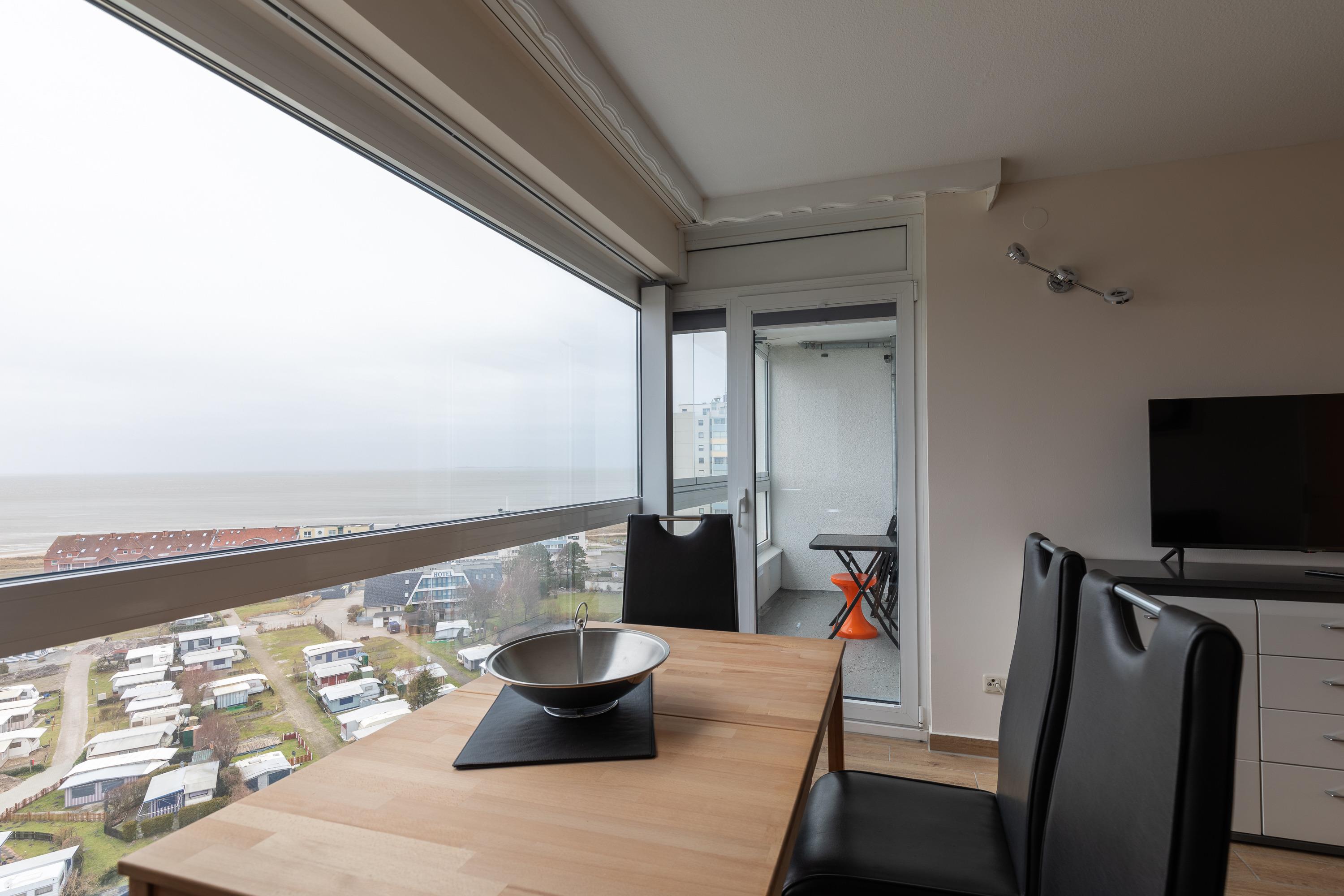 Die Ferienwohnung "Haus Frische Brise Sahlenburg Wohnung 12.7" bietet Platz für maximal 2 Personen und befindet sich in der 12. Etage. Sie verfügt über ein gemütliches Schlafzimmer und ein Badezimmer. Zur Ausstattung gehören eine Mikrowelle, Kaffeemaschine, Wasserkocher, Toaster, eine Küchenzeile, ein TV-Gerät (im Schlafzimmer) und ein TV-Flachbild im Wohnzimmer. In der Anlage können Sie außerdem die Sauna, das Schwimmbad, den Tischtennisraum, Waschmaschine und Trockner (jeweils gegen Gebühr) und einen Tennisplatz (gegen Gebühr) nutzen. Auf dem Balkon (ist verglast, die Verglasung kann geöffnet werden) können Sie den Meerblick genießen. Für Ihre Anreise steht Ihnen eine Garage zur Verfügung.