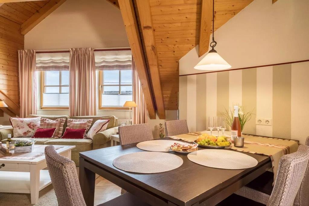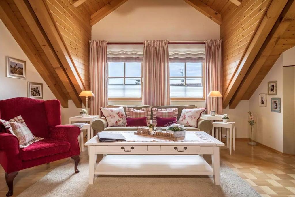 Denne kærligt og komfortabelt møblerede ferielejlighed lover en dejlig og afslappende ferie i umiddelbar nærhed af Bodensøen. Vores nyrenoverede 4-værelses ferielejlighed (loft) er udstyret med al komfort og er blevet tildelt fire stjerner. Op til 5 personer kan fuldt ud nyde deres ferie i denne 98 m² store lejlighed. Det tredje soveværelse på loftet er tilgængeligt via en stejl trappe og er ikke egnet til børn under 10 år. Lejligheden har tre separate soveværelser, et nyt køkken, et badeværelse og en stor sydvendt balkon. Det åbne køkken, der løber ud i spisestuen, tilbyder alt, hvad du behøver for at spare værdifuld ferietid, herunder ovn, opvaskemaskine, mikrobølgeovn, kaffemaskine, elkedel og brødrister. Loftlejligheden er meget velegnet til familier såvel som ældre mennesker med normal mobilitet. Gratis Wi-Fi er tilgængelig.