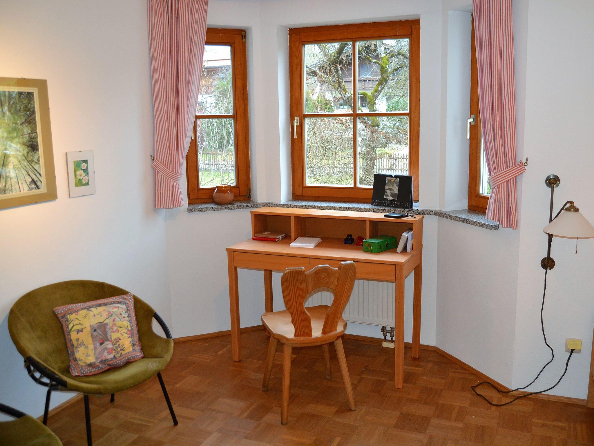 Die großzügige Ferienwohnung liegt am Rand des hübschen Dorfes Törwang, mitten auf dem Samerberg. Sie befindet sich im Ergeschoss eines gepflegten Mehrfamilienhauses. Vom Wohnraum erreicht man die sonnige Süd-West-Terrasse mit Gartenanteil. Hier bietet sich ein herrlicher Blick auf die umgebenden Weiden und Wiesen sowie auf die Hausberge Hochries und Heuberg. Zur Wohnung gehören ein Tiefgaragenstellplatz sowie ein abschließbarer Gemeinschaftsfahrradraum, die beide vom Treppenhaus erreichbar sind.