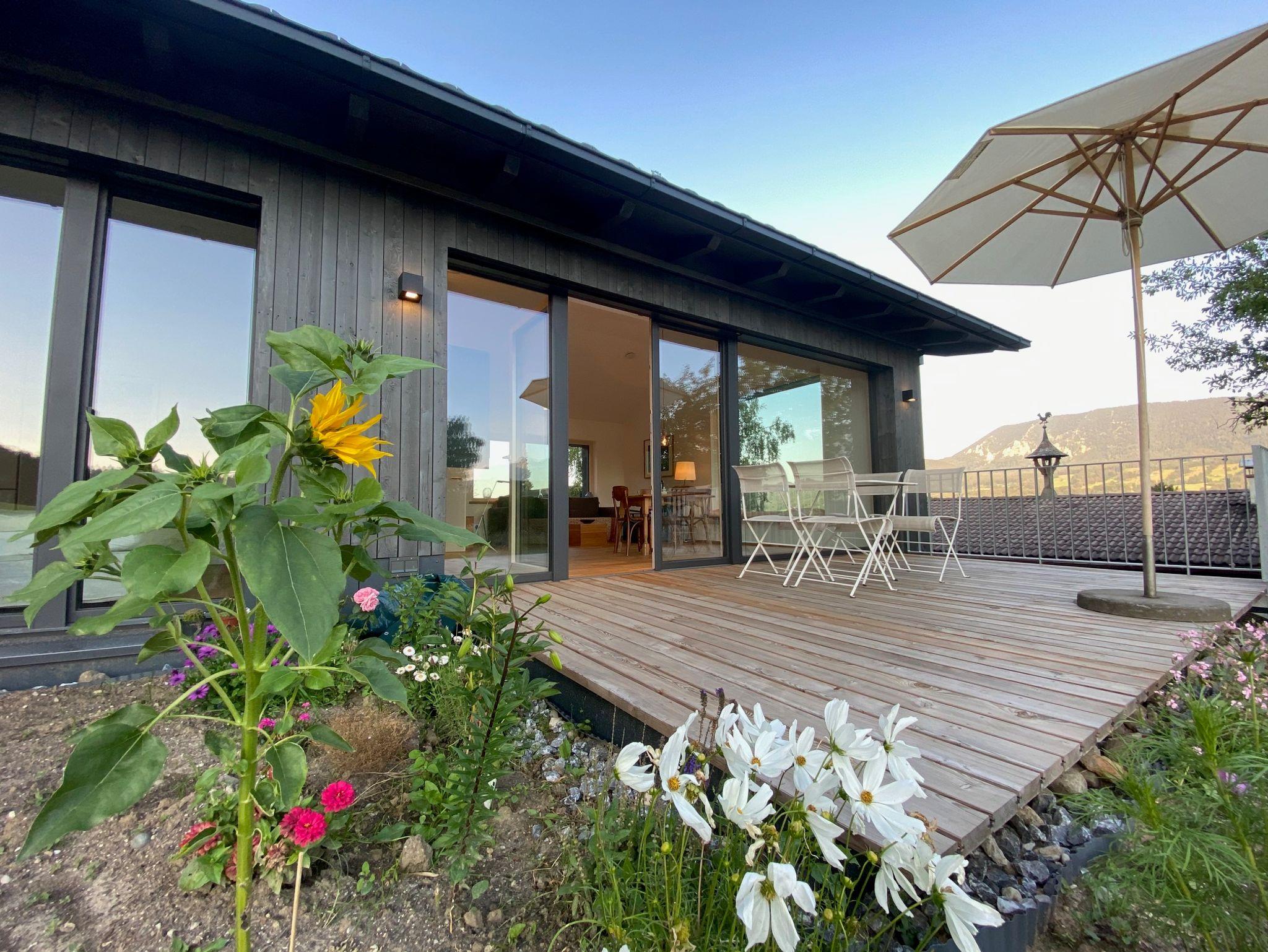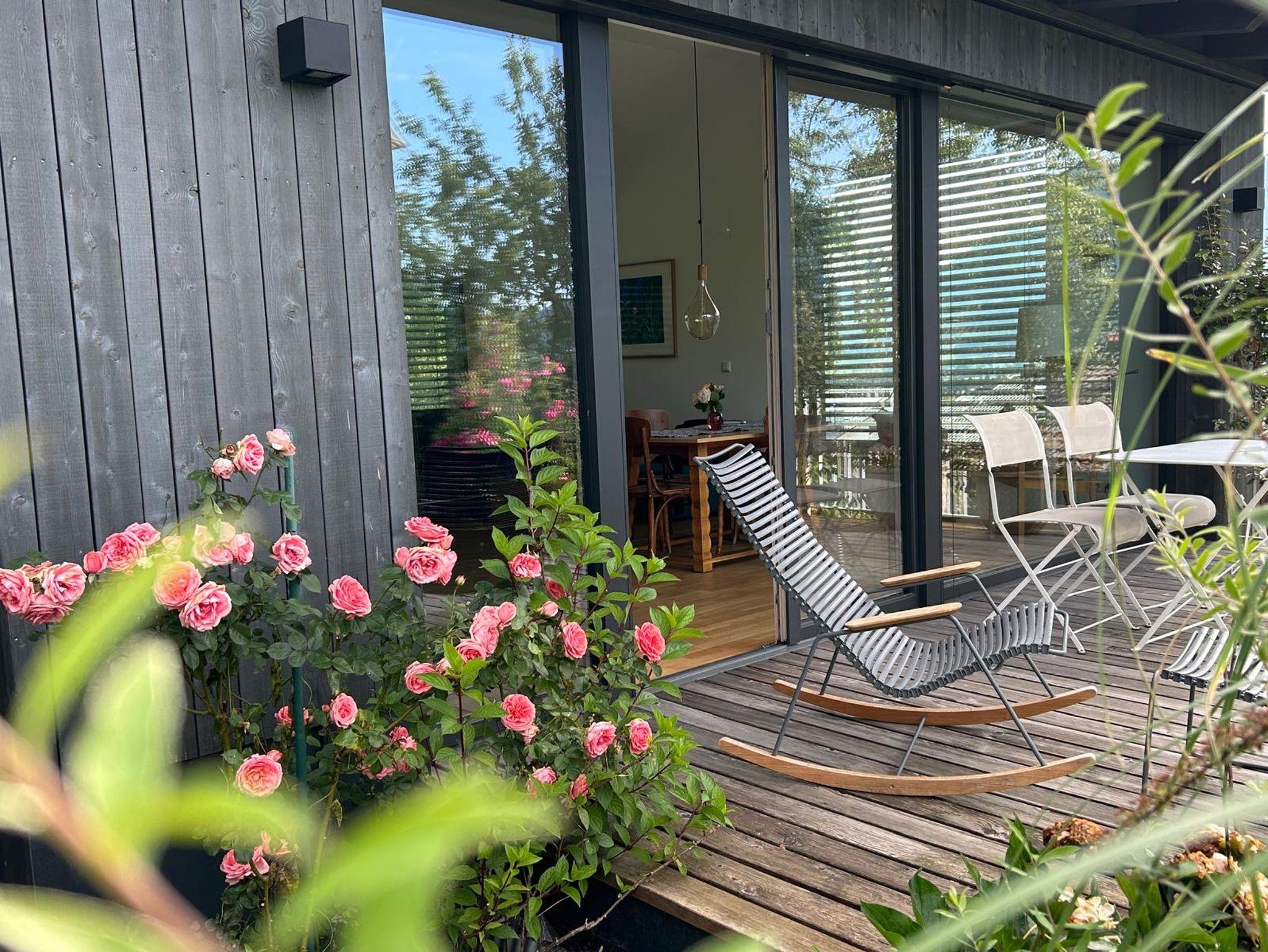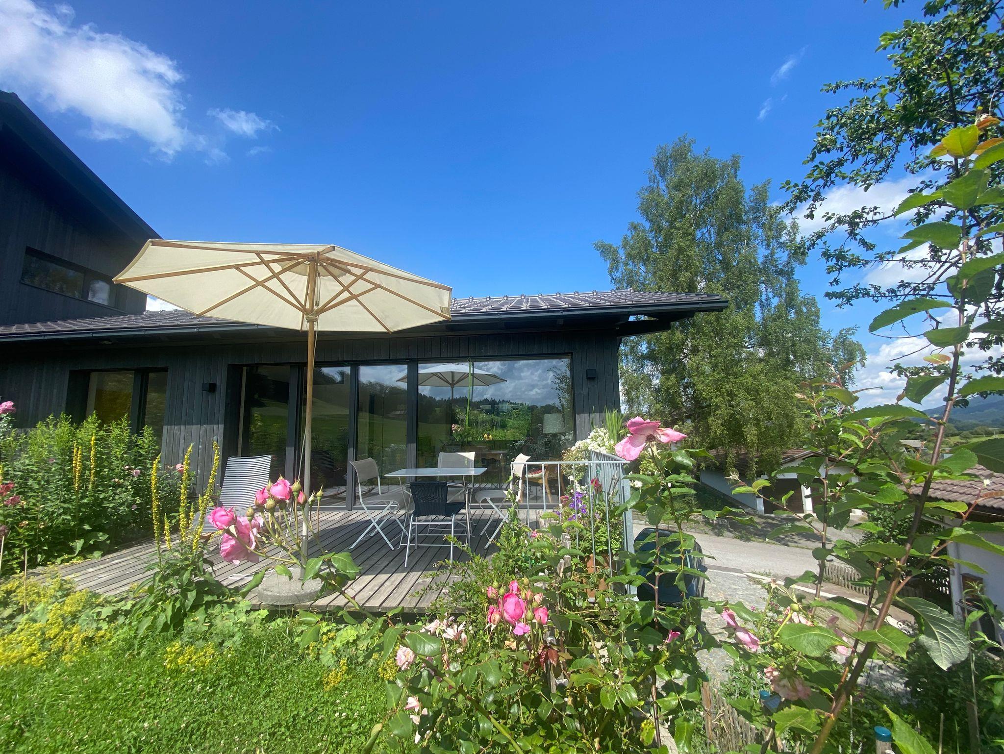 Im Juli 2020 wurde unser Ferienhaus im Archtiktenstil in Holzständerbauweise mit heimischen Hölzern fertiggestellt. Ökologische Holzhäuser sind frei von Giftstoffen und für Allergiker besonders geeignet. Das lichtdurchflutete 2-Zimmer Haus mit über 60 qm und eigener Terrasse und Garten mit alten Obstbäumen liegt absolut ruhig und uneinsehbar am westlichen Dorfrand von Törwang mit Blick auf die Hochries, den Heuberg und ins Inntal. Das Haus hat ein Schlafzimmer mit traumhaften Heuberg-Blick (Bett 180 x 200 cm), ein Bad mit Dusche / WC (und Fußbodenheizung) und einem großen Wohnraum mit ausziehbarer Couch (mit hochwertiger Federkernmatratze) auf der bequem 2 weitere Personen übernachten können, Designerküchenzeile und großen Panorama-Fenstern nach Osten, Süden & Westen. Elektrische Jalousien sind an allen Fenster vorhanden. Das Haus liegt in einer Sackgasse, abgesehen von einem Traktor, der mal vorbeifährt, gibt es so gut wie keinen Verkehr und somit absolut ruhig. Auf der großen Terrasse, die uneinsehbar ist, haben wir Liegen, Stühle, einen Tisch und Sonnenschirm und Sie können die vielen Vögel und die wunderbare Natur beobachten und es ist der perfekte Platz und die Zeit zu vergessen und Kraft zu tanken.