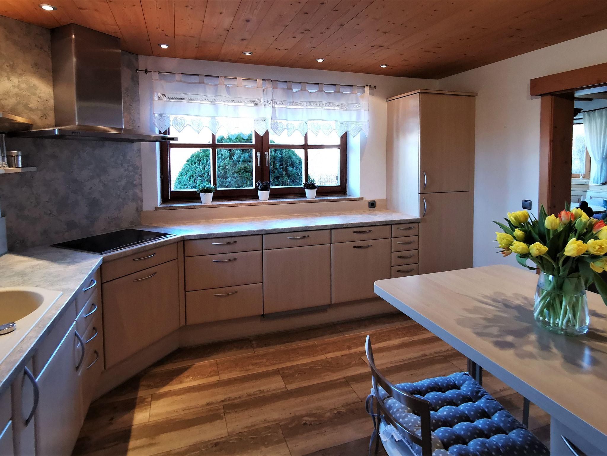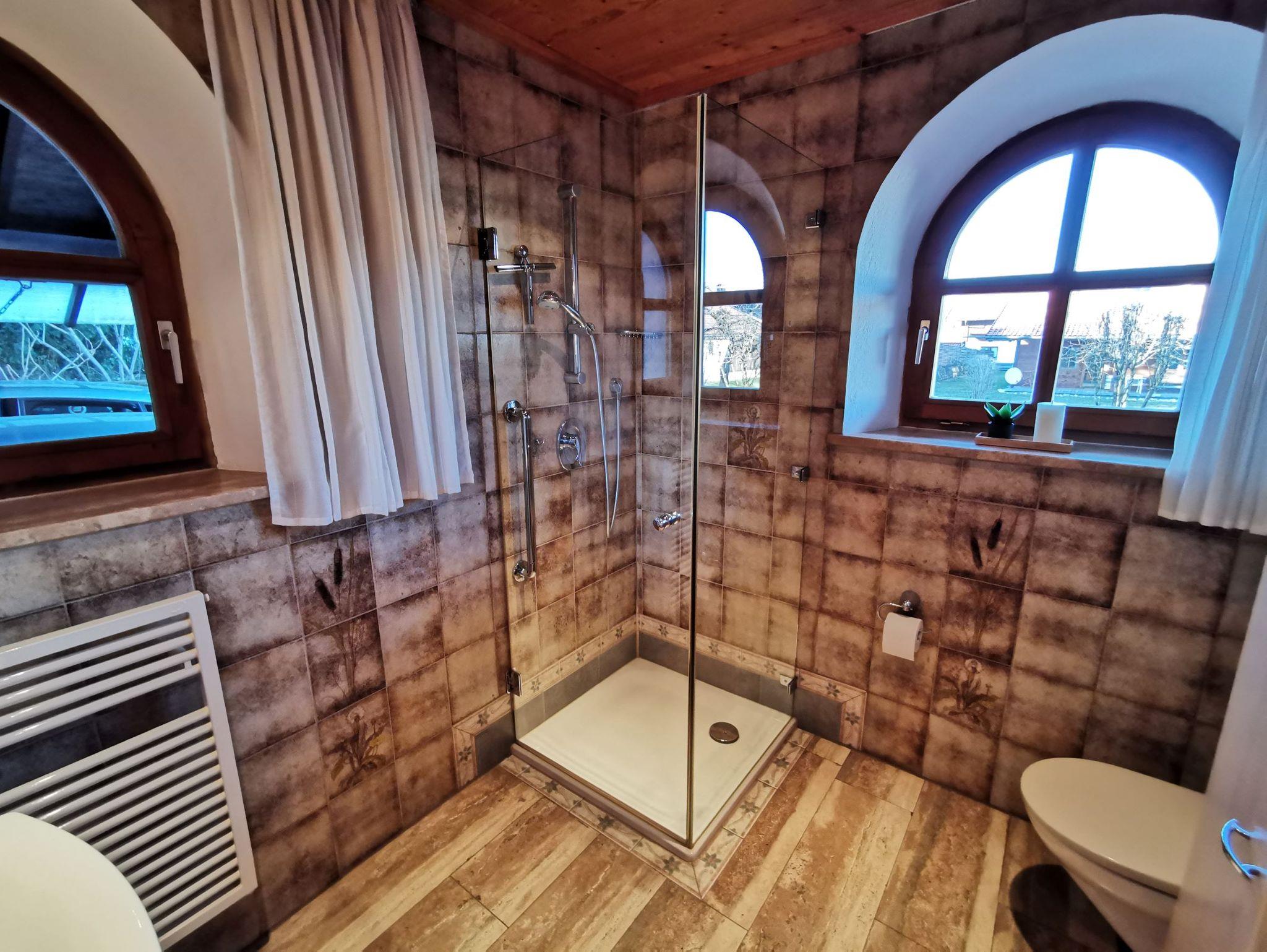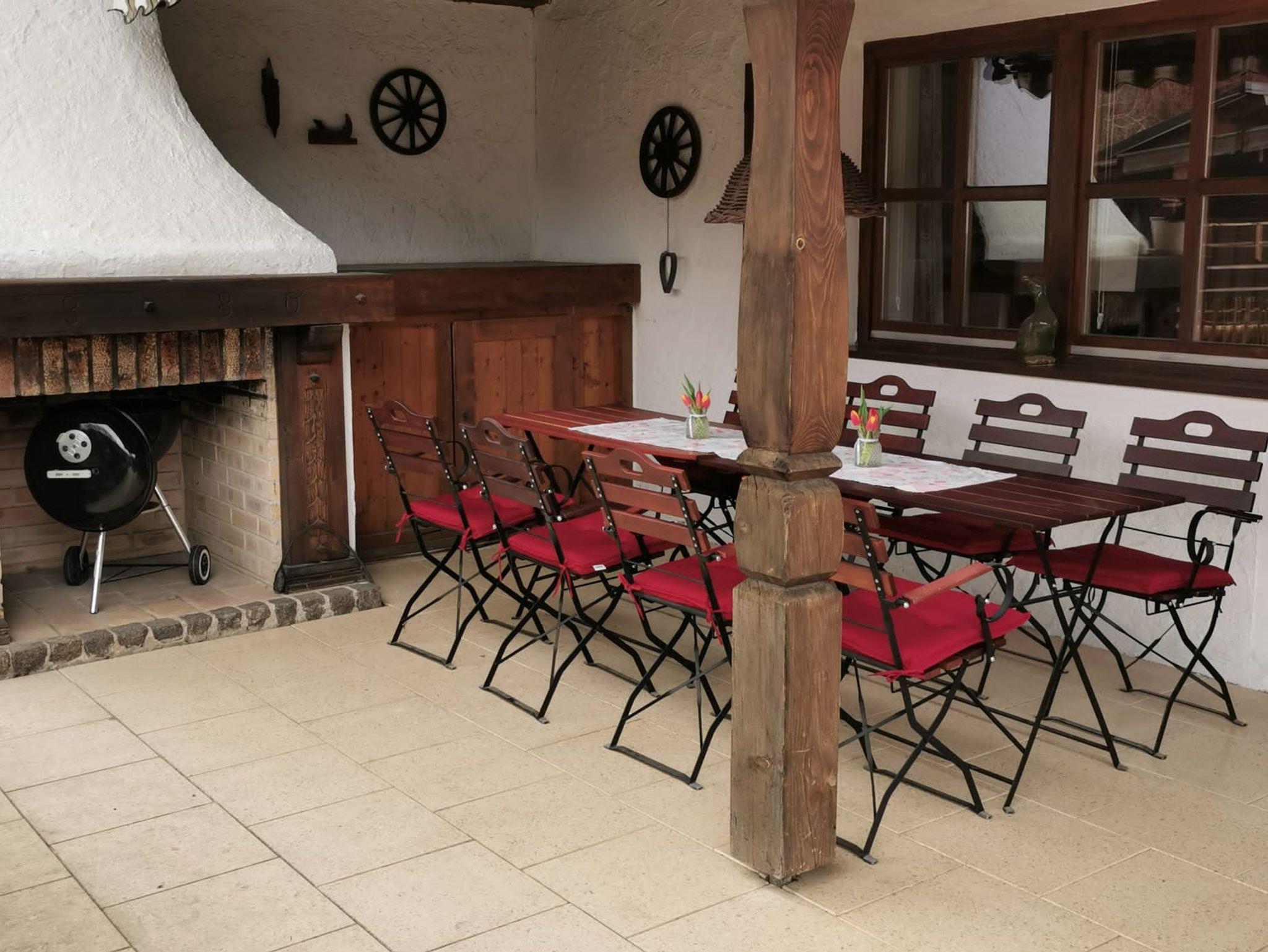 Das großzügig geschnittene Ferienhaus (160 qm2) ist liebevoll im Landhausstil eingerichtet und bietet viel Platz für Großfamilien oder Urlaub mit Freunden. Das Haus verfügt über drei wohnlich eingerichtete Schlafzimmer, eine großräumige Küche mit Spülmaschine, ein Esszimmer und ein großes Wohnzimmer mit TV, jeweils mit Kachelofen. Außerdem stehen zwei Bäder mit einer Dusche bzw mit einer Badewanne zur Verfügung. Den Garten können Sie auf zwei Terassen mit großer Liegewiese und Grillmöglichkeit genießen. WLAN und Parkmöglichkeit am Haus sind vorhanden. Das Grundstück ist umzäunt und somit für Urlaub mit Hunden geeignet.