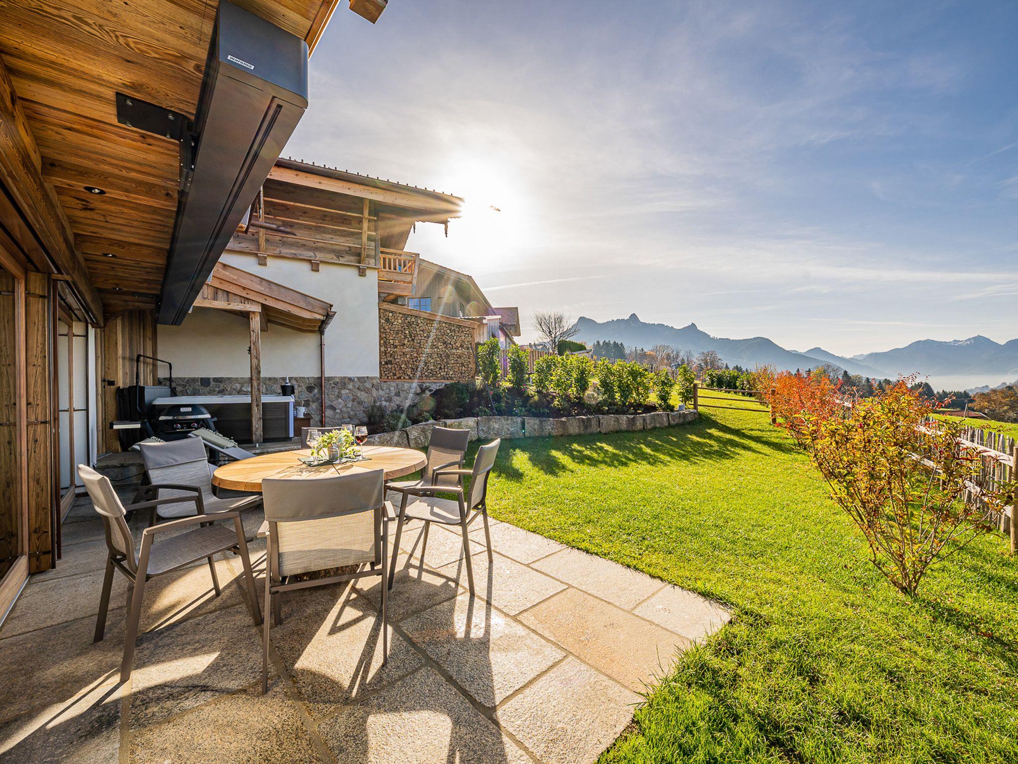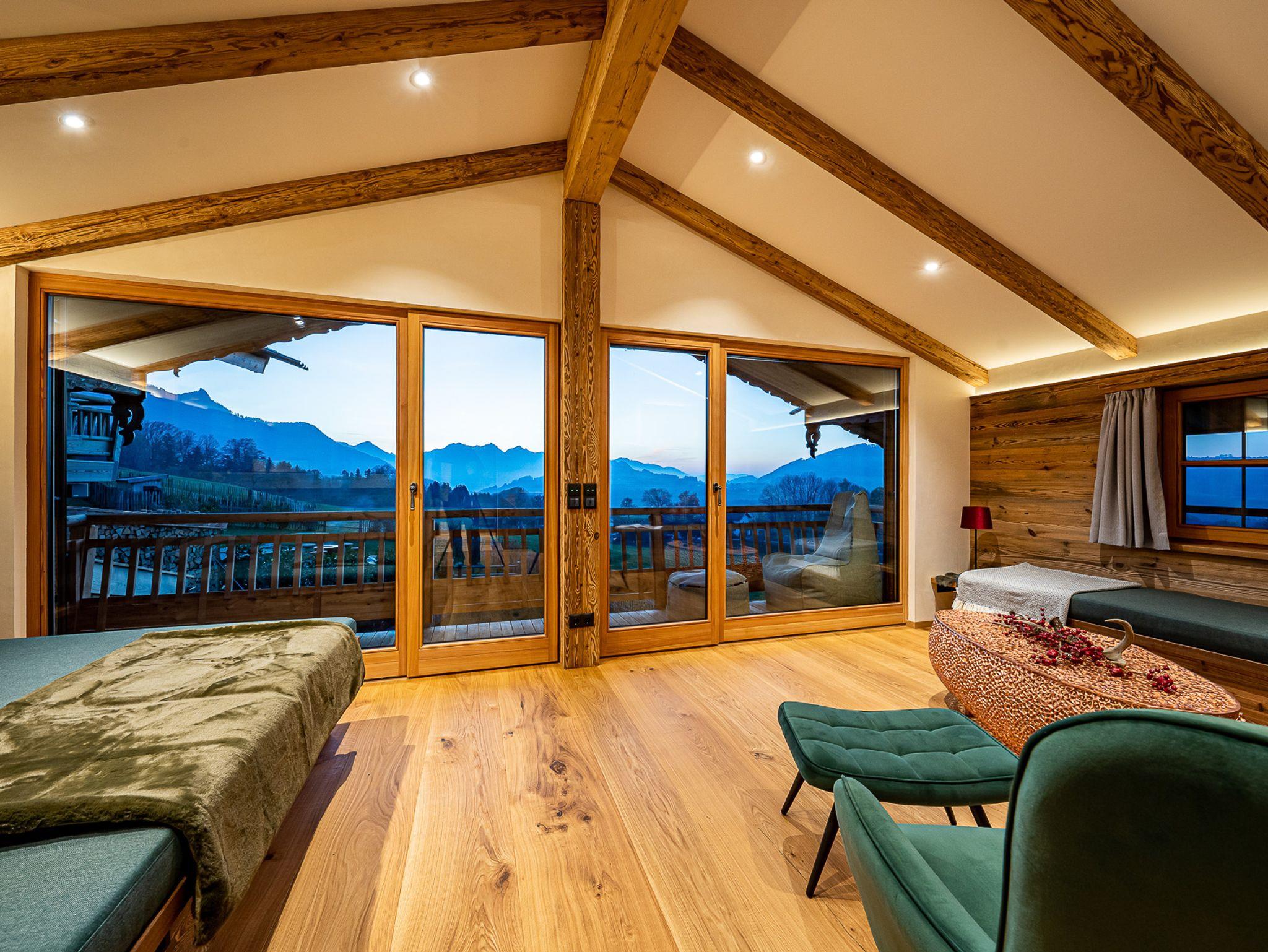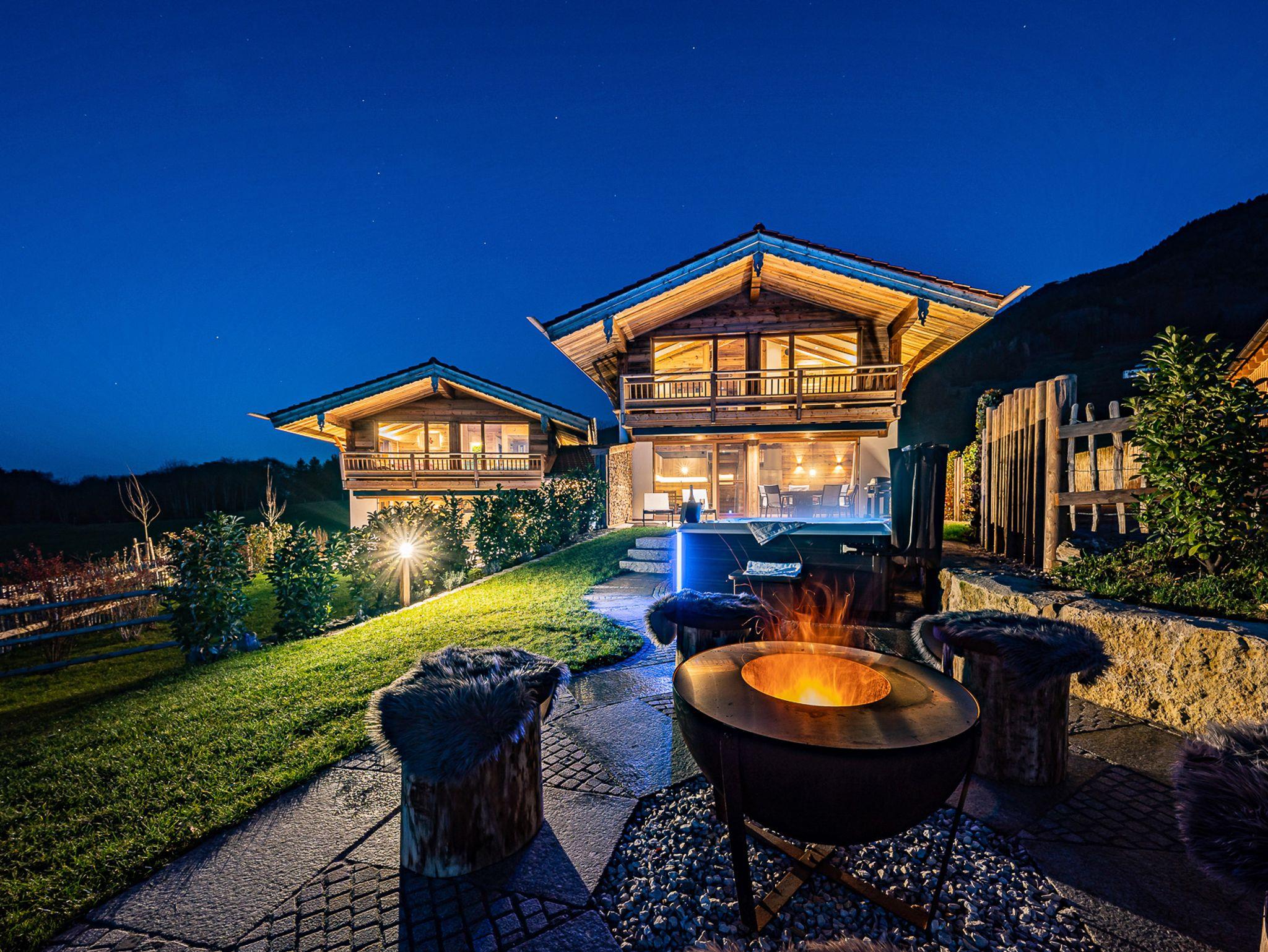 Zwei elegant-gemütliche Ferien-Chalets (Fertigstellung ca. Nov 2021) mit hochwertigsten, natürlichen Materialien und viel Liebe zum Detail erbaut, ermöglichen bei traumhaftem Bergblick in intakter Umgebung die perfekte Erholung - im Frühling, im Sommer wie auch im Herbst. Jede Jahreszeit hat hier Ihren eigenen, malerischen Charme und die Alm-Chalets sind der perfekte Ausgangspunkt für ausgiebige Wanderungen und Radtouren. Im Winter bieten sich ganz in der Nähe Rodeln, Schneewanderungen, Ski/-touren und Langlaufen an. Pro Alm-Chalet können sich vier Gäste auf 130 qm (EG und 1. OG mit Balkon) auf eine bestens ausgestattete Küche, hochwertige- nach traditioneller Handwerkskunst hergestellte Möbel in zwei Schlafzimmern (Boxspringbetten), einen lichtdurchfluteten Essbereich, eine Sauna/Infrarotkabine mit großer Ruheliege, einen privaten beheizten außen-Whirlpool (inkl. Sonnenliegen) und einen Grillplatz(Feuerschale mit Grillplatte) im privaten Garten und extra Weber Elektrogrill auf der Terrasse freuen. Wir freuen und schon und geben uns die größte Mühe, die Wohnung im 5-Sterne-Standard für sie auszustatten.