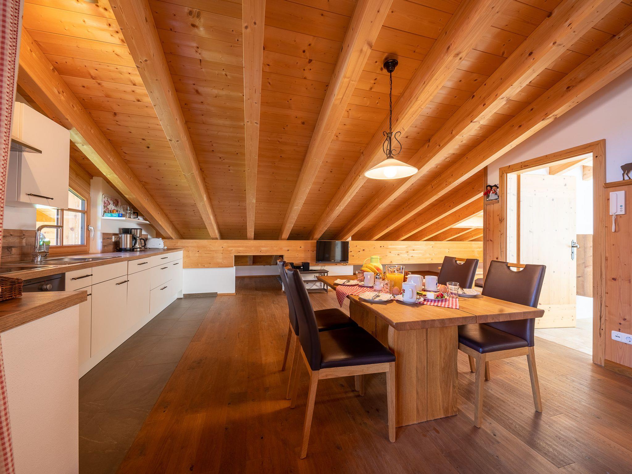 Herzlich Willkommen in unserer Schoberalm. Diese 2016 neu gebaute, 66 qm große Ferienwohnung im zweiten Stock ist rustikal eingerichtet und mit einem Sichtdachstuhl versehen. Wie es sich für eine Alm gehört, haben Sie von hier aus einen wunderbaren Blick auf die umliegenden Berge. Ein kleiner Balkon, ein großes Matrazenlager sowie eine große in der Dachschräge befindliche Spielhöhle für die Kleinen Besucher runden unser Angebot ab. Genießen Sie hier in Ruhe die Natur und Ihren Urlaub!