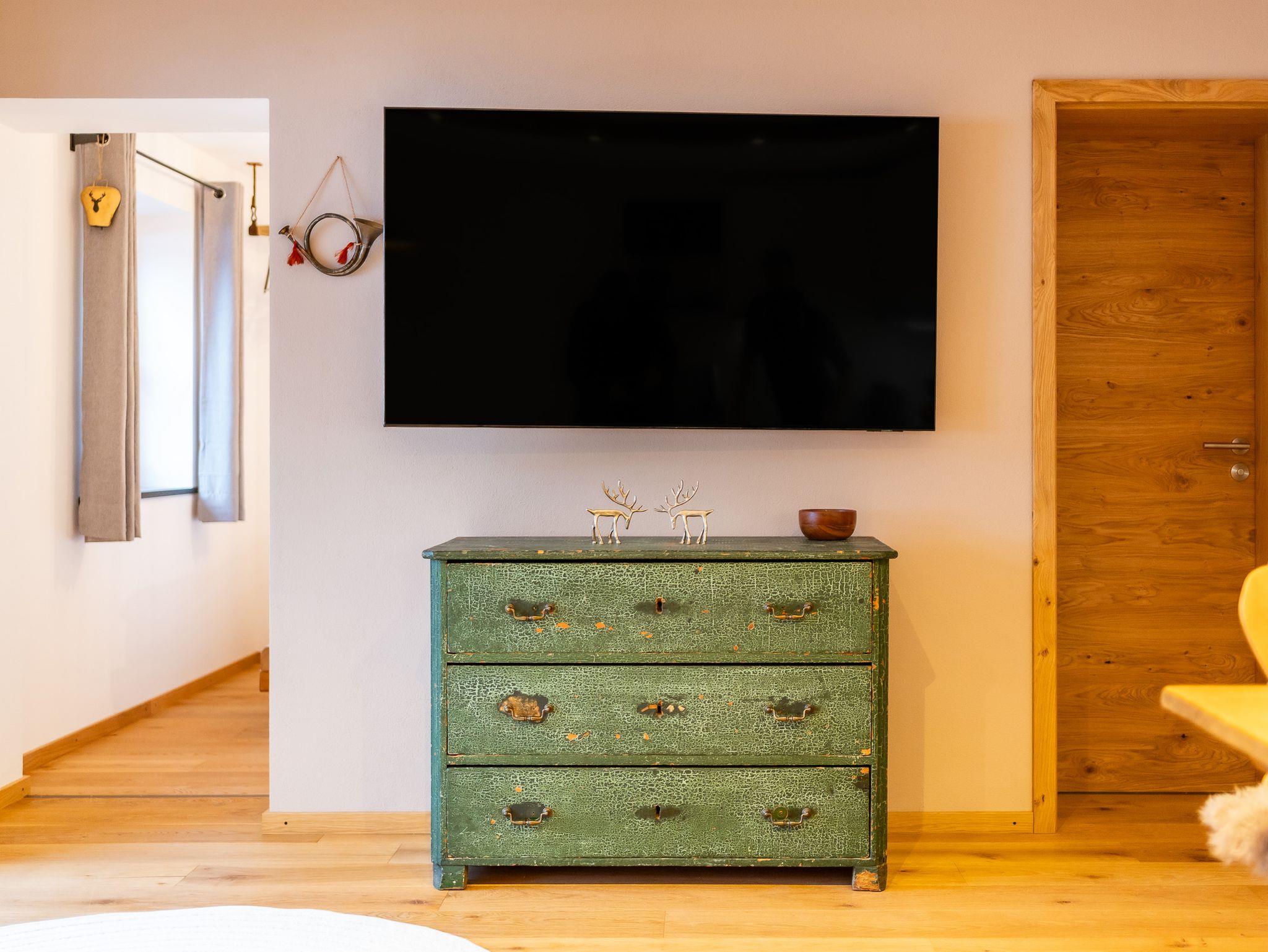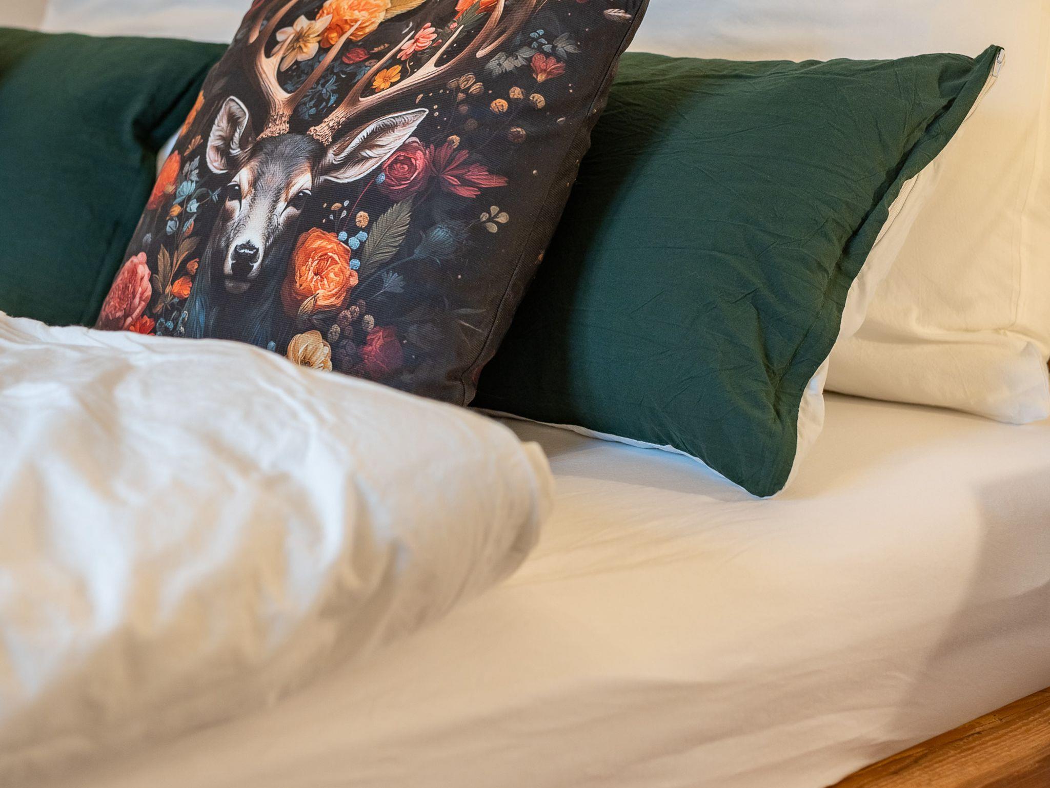Unsere Jagastubn vereint bäuerliches Design mit viel Holz und modernen Akzenten, wie beispielsweise unsere moosgrüne Relaxcouch zum Entspannen. Wie wäre es, in einem selbst gebauten Balkenbett aus uralten, wiederaufbereiteten Tennenholzbalken zu schlafen oder auf unserer XXL-Sonnenterrasse morgens seinen Kaffee zu trinken mit Blick direkt auf die Hochries? Einfach mal ausprobieren und wohlfühlen!