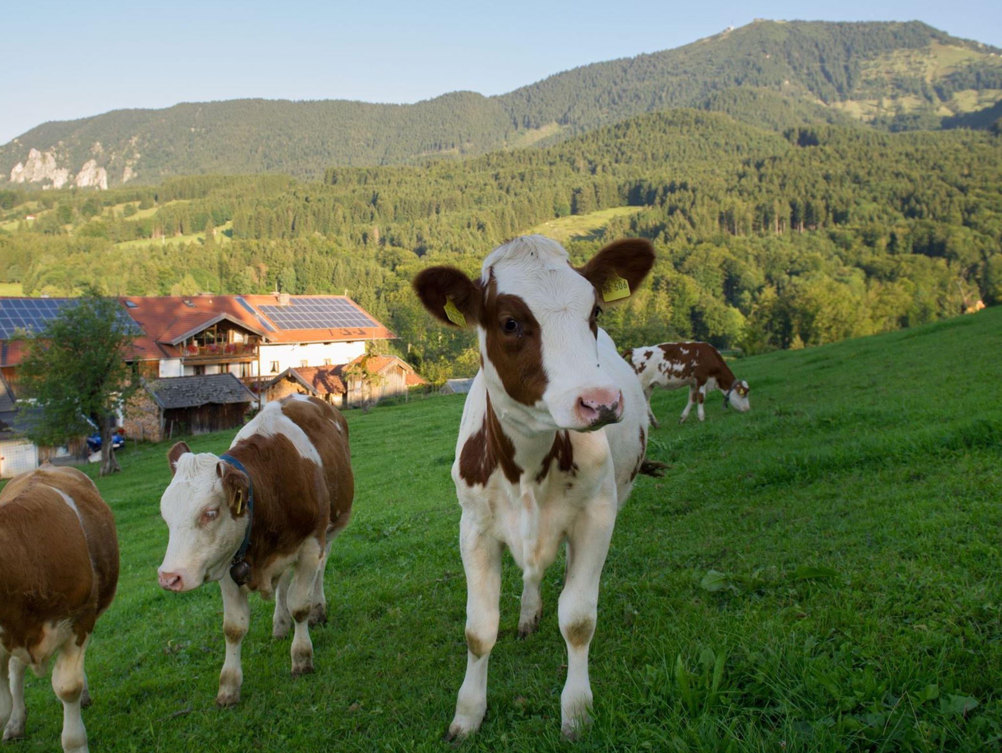 Der Bauernhof ist ein auf leichter Anhöhe ruhig gelegener Einzelhof mit Kühen und Kälbern, traumhaftem Bergblick und ohne Durchgangsverkehr. Es stehen zwei Ferienwohnungen sowie ein Doppelzimmer zur Verfügung.