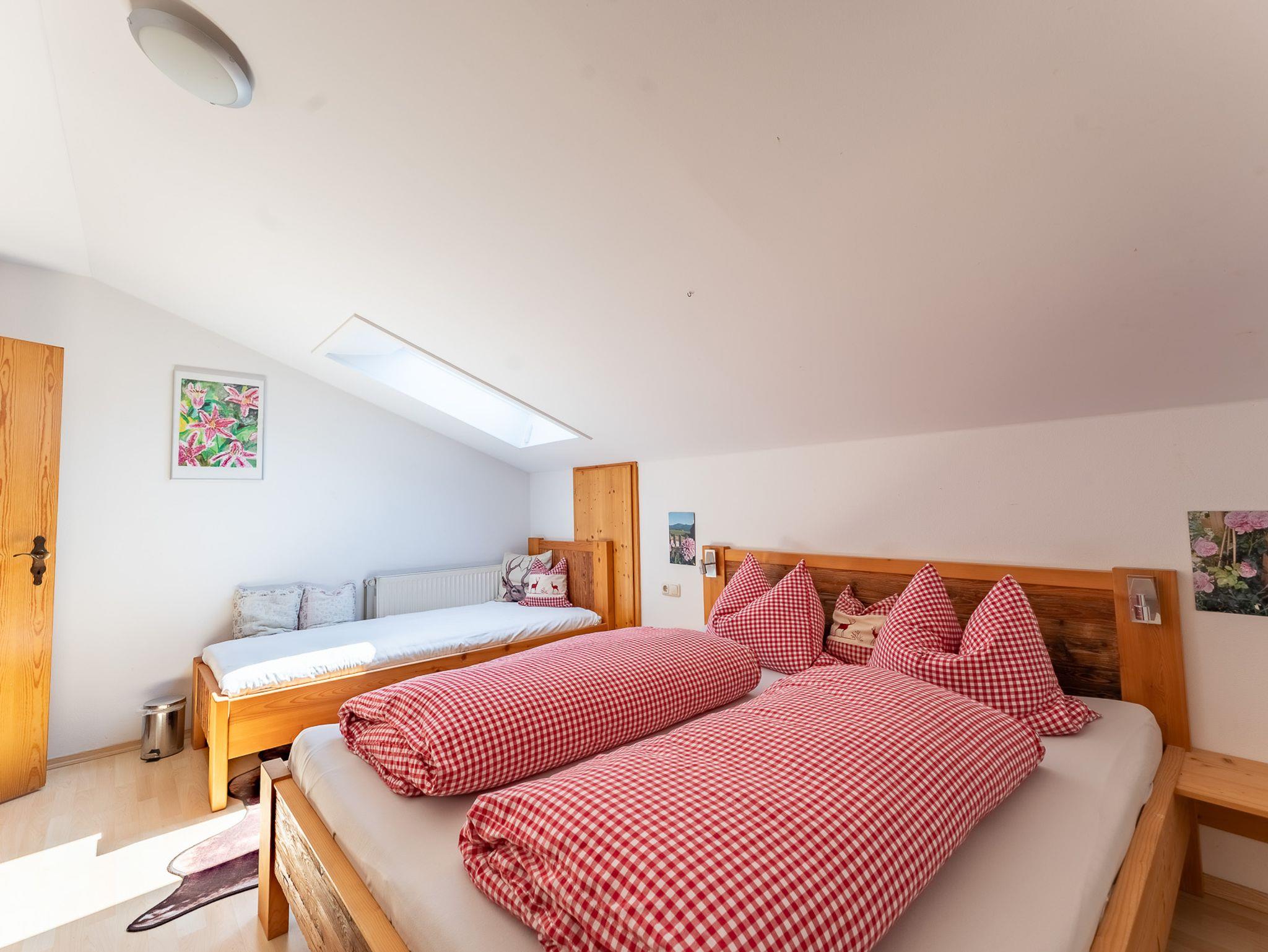 5 Räume, davon 2 separat gelegene Schlafräume, 5 Betten, 1 Schlafcouch.Genießen Sie traumhafte Urlaubstage in unserer geräumigen Ferienwohnung Feichteck mit komfortabler Ausstattung.Die Wohnung hat einen eigenen Eingang, eine gemütliche Wohnküche sowie 2 separate Schlafzimmer mit Balkon und herrlichem Bergblick! Weitere Details zur Wohnung finden sie unter den Ausstattungsmerkmalen.Jeden Morgen (außer sonntags) kommt der Bäcker zum Hof.Haustiere in der Wohnung pro Tag 8 Euro (nur nach Absprache möglich!)Es würde uns freuen, Sie als Gast bei uns auf dem Adlerhof begrüßen zu dürfen. Ihre Familie Stuffer - - KURZURLAUBER AUFGEPASST: Bei einem Kurzaufenthalt unter 4 Nächten verlangen wir einmalig einen Zuschlag von 80,- Euro