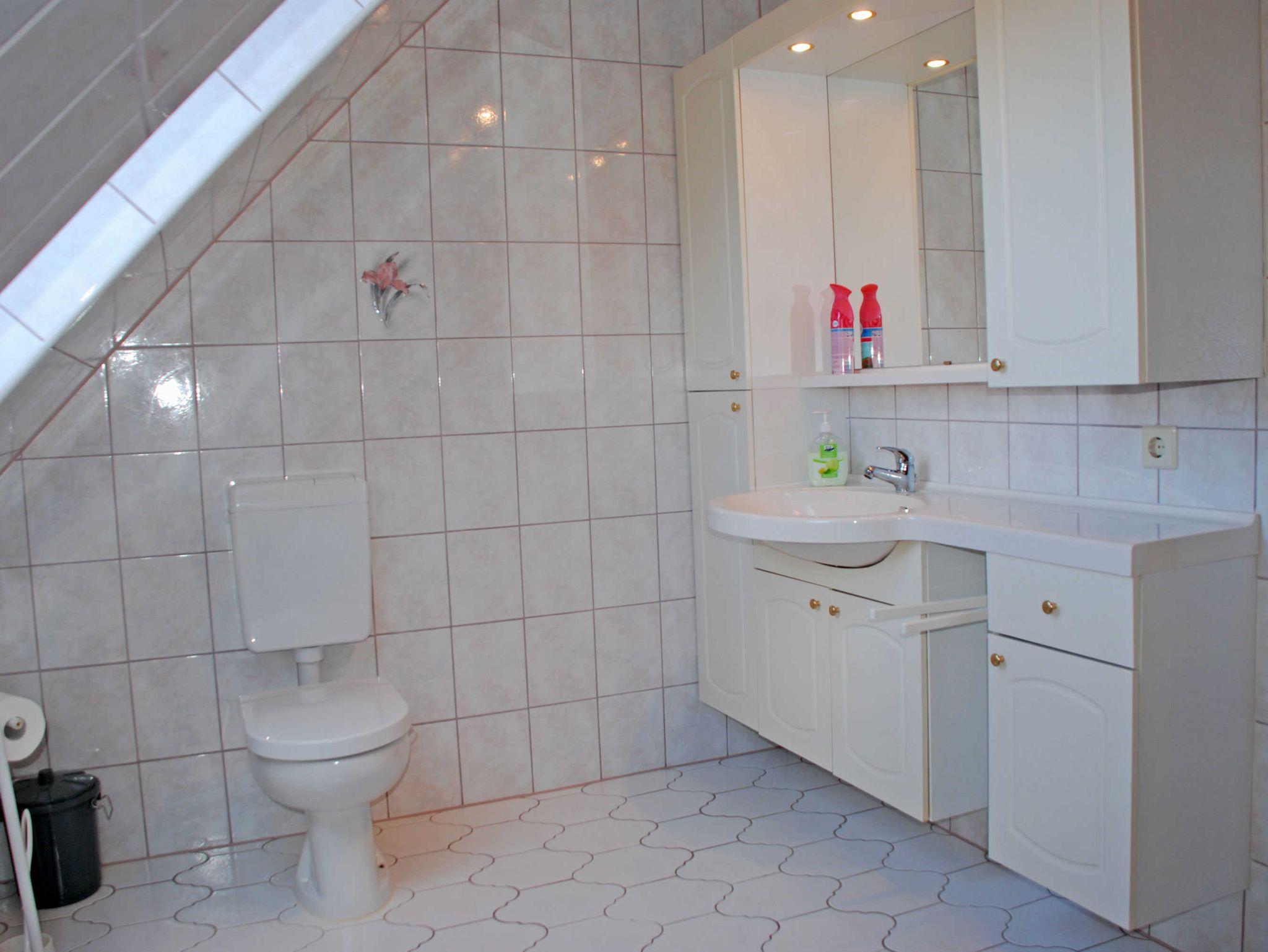 Komplettiert wird die Ferienwohnung durch ein großes Bad mit Wanne und Tageslicht.