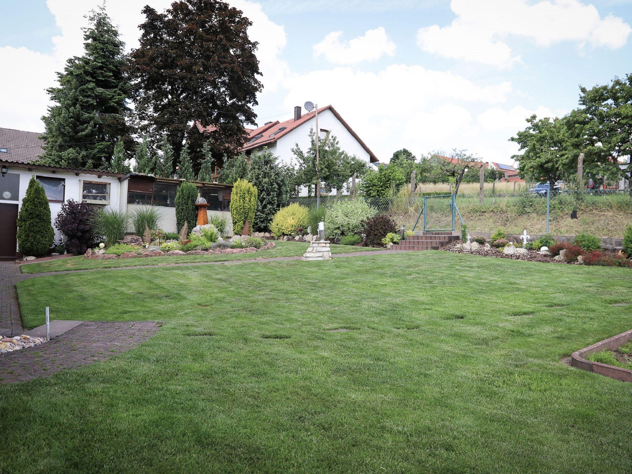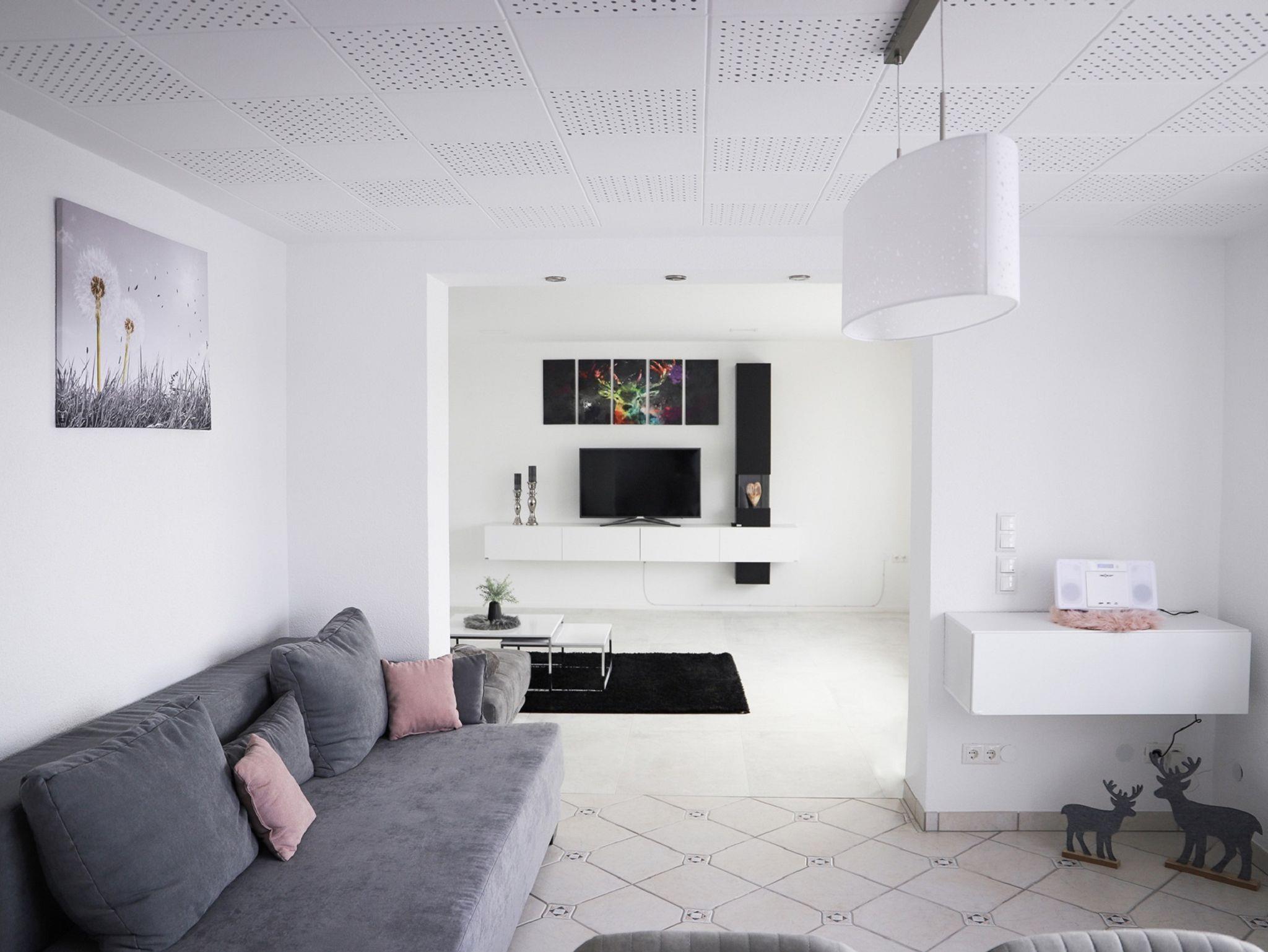 Die Ferienwohnung bietet auf 95 Quadratmetern Platz für bis zu 4 Personen. Der große offene Wohn-Essbereich ist ausgestattet mit einer schönen Wohnlandschaft, Sideboard, Flachbildschirm, akzentvoller Fliesenwand mit gemütlichen Flair und einer großer Schiebetür zur Terrasse. Der Essbereich verfügt über einen Tisch mit vier Stühlen, Kuschelsofa (160*200 cm) zum Ausziehen sowie einem Beistelltisch mit Leselampe, Hängeschrank mit diversen Büchern und Spielen für Groß und Klein. Die komplett eingerichtete Einbauküche inklusive Spülmaschine verfügt über Kaffeemaschine, Nespresso-Tab-Maschine (zwei Kapseln pro Tag inklusive) Kühlschrank mit Gefrierfach, Backofen, Mikrowelle, Toaster, Eierkocher und vieles mehr. Eine kleine Sitzecke rundet das ganze ab. Der große Schlafraum mit Blick ins Grüne verfügt über ein Bett (200*200cm), zwei Nachttischchen aus Glas, Leselampen, Kleiderschrank, stilvollen Kleiderhaken, Schirm und zwei Bademäntel zum Relaxen. Das moderne Badezimmer verfügt über eine bodenebene Dusche mit Massagefunktion, Toilette, Waschtisch mit Schrank, Shampoo- und Duschgelspender, Flüssigseife, Handcreme sowie Föhn. Unsere Ferienwohnung ist komplett mit Ölheizung ausgestattet, alle Fenster haben Rollos, teilweise elektrisch. Unter der überdachten Terrasse kann man bei einem Gläschen Wein und leckerem Essen den Abend ausklingen lassen. Ein Tisch mit vier Stühlen, zwei Sonnenliegen und einer großen Lounge, sowie einem Holzkohlengrill, stehen im Außenbereich zur Verfügung. Auf Anfrage kann im voll ausgestattetem Waschkeller die Waschmaschine genutzt werden.
