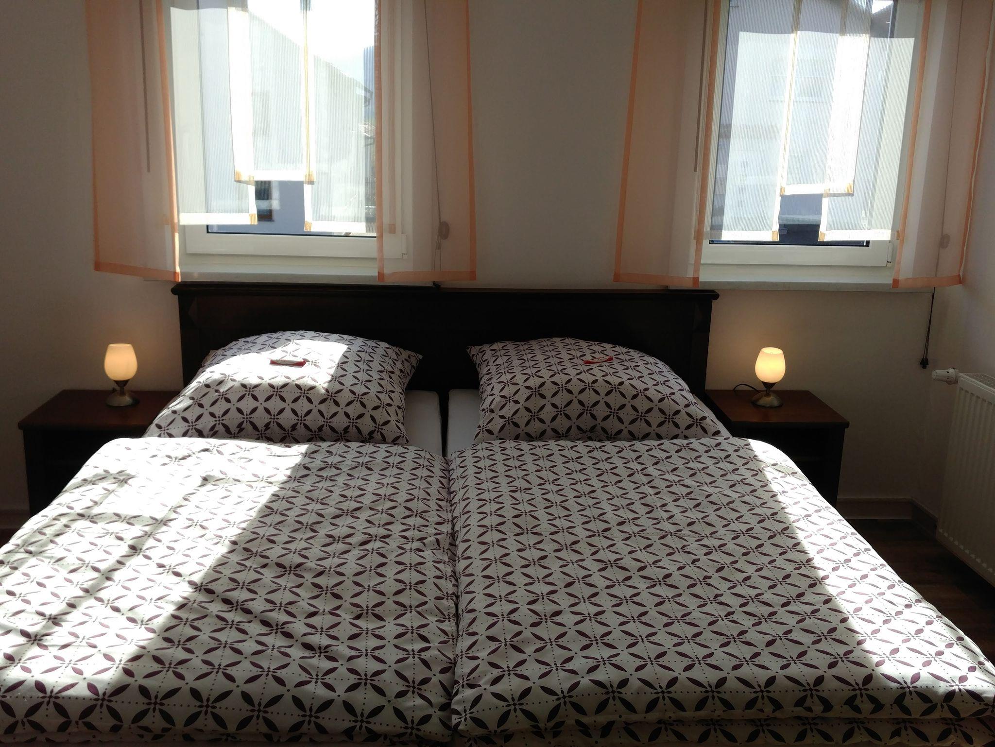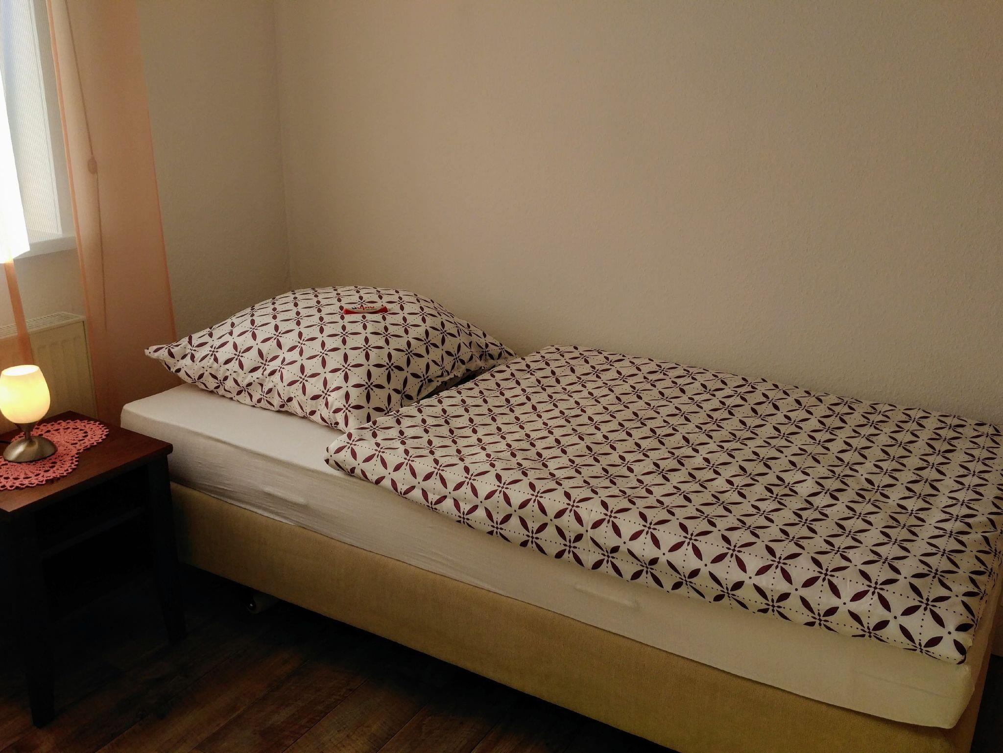 Im Obergeschoss befinden sich 2 Schlafzimmer mit je einem Doppelbett sowie 3 Schlafzimmer mit je einem Einzelbett. Zwei dieser Zimmer sind nur über das Doppelzimmer erreichbar. Die Doppelbetten sind auch einzeln stellbar. Im Erdgeschoss ist ein Schlafsofa vorhanden. Ein Kinderbett sowie ein Hochstuhl sind auf Anfrage verfügbar.