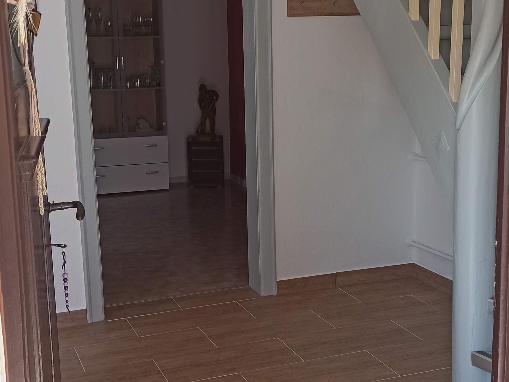 Im Erdgeschoss befindet sich ein Wohnzimmer mit Sofa und TV, ein eingerichtetes Esszimmer und eine vollausgestattete Küche mit Spülmaschine, Kaffeemaschine, Wasserkocher, Kühlschrank mit Gefrierfach, Backofen, Toaster, Brotschneidemaschine, Pürierstab und uvm.