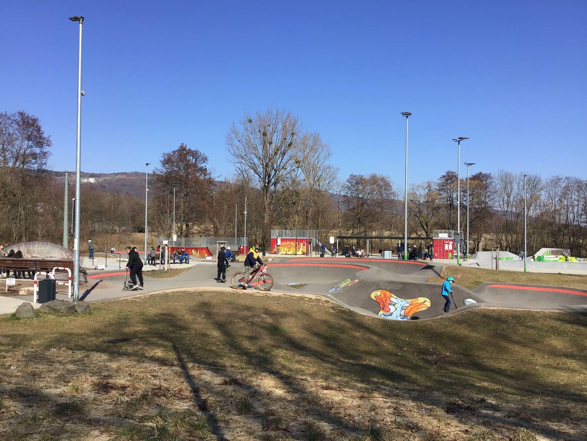 Großer Garten mit altem Baumbestand, Grillhütte mit Kamin, Schaukel und Rutsche für Kinder, Sielplatz und Sportplatz nebenan.