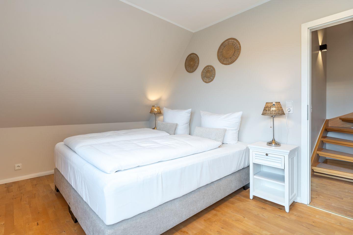 Drei geschmackvoll eingerichtete Schlafzimmer, die im Obergeschoss liegen, bieten Ihnen die Rückzugsmöglichkeit, die Sie nach einem erfüllten Tag an der frischen Luft benötigen. Jedes Schlafzimmer ist darauf ausgelegt, höchste Gemütlichkeit zu bieten und lädt dazu ein, die Seele baumeln zu lassen. Zwei moderne Badezimmer mit Dusche sorgen für zusätzlichen Komfort und ermöglichen Ihnen ein entspanntes Starten in den Tag.