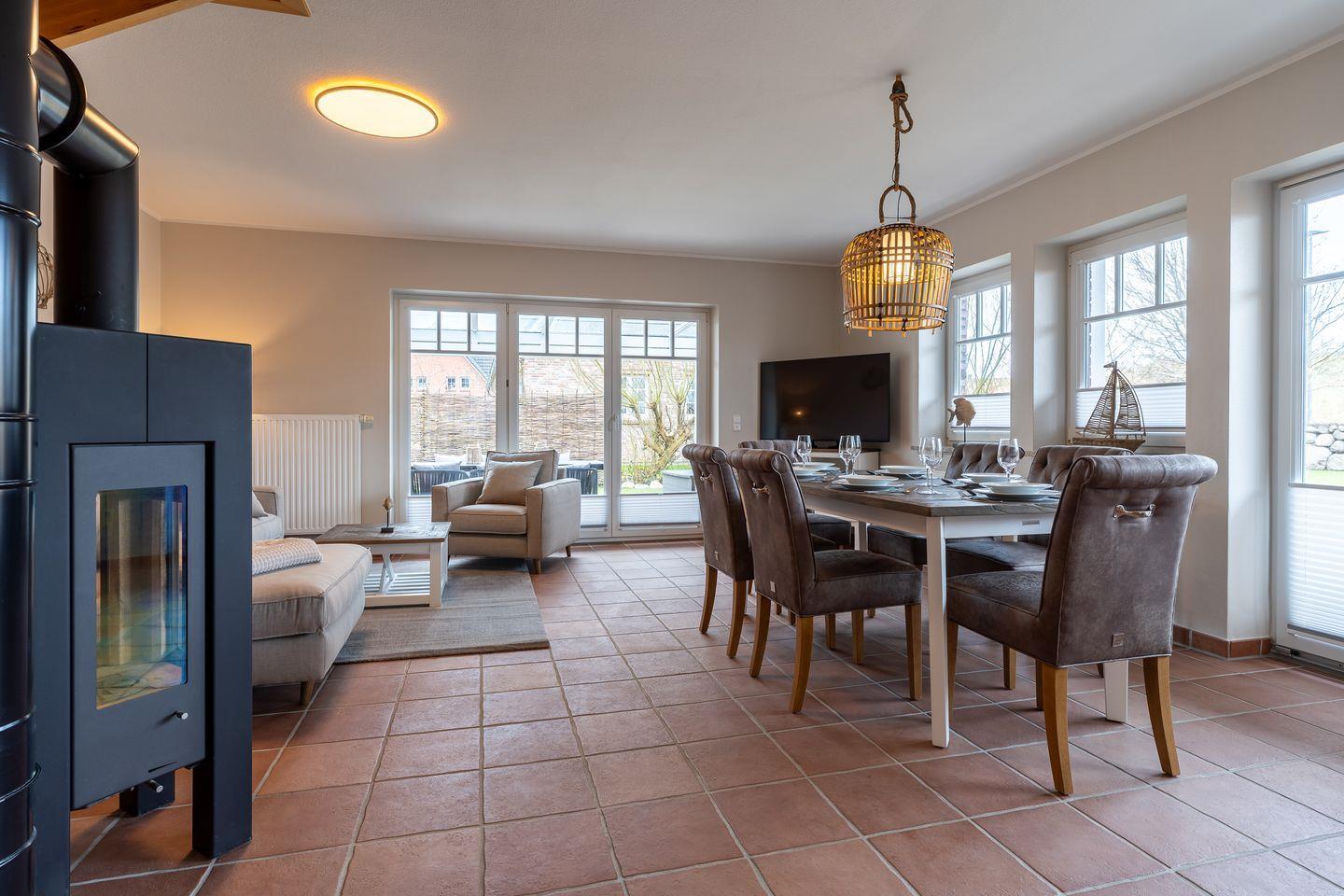 Willkommen im Diekhus SPO Diekhus 1 in Sankt Peter-Ording. Diese großzügige Unterkunft erstreckt sich über 100 m² und bietet Platz für bis zu 6 Gäste in 3 Schlafzimmern. Genießen Sie die erholsame Atmosphäre auf der überdachten Terrasse oder im Garten. Die moderne, offene Küche ist mit allen wichtigen Annehmlichkeiten ausgestattet, darunter ein Geschirrspüler und eine Mikrowelle. Weiterhin stehen Ihnen zwei Badezimmer sowie WLAN und ein Kaminofen zur Verfügung. Kinder sind willkommen, und ein Privatparkplatz ist ebenfalls vorhanden. Optimal für einen erholsamen Urlaub an der Nordsee!