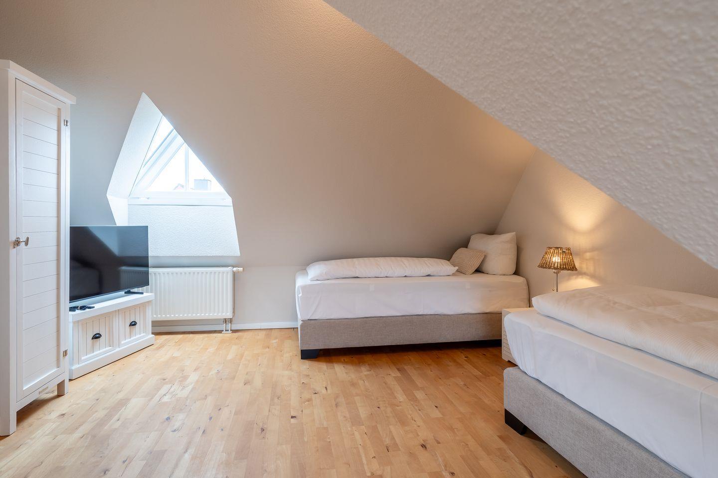 Bei der Ausstattung der Unterkunft wurde an alles gedacht. Auf zwei Etagen finden Sie drei geschmackvoll eingerichtete Schlafzimmer, die eine ruhige und erholsame Nachtruhe versprechen. Zudem steht Ihnen ein Gäste-WC sowie ein modernes Badezimmer mit Dusche zur Verfügung.