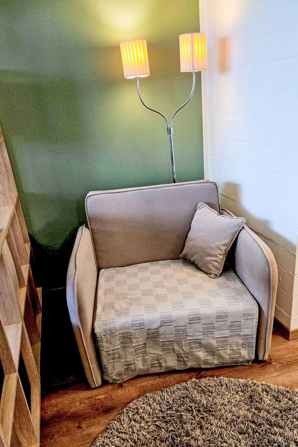"Nicole inkl. Schwimmbad und Sauna", 1-room apartment 33 m2, on the ground floor. Object suitable for 2 adults + 1 child. Tasteful furnishings: living/sleeping room with 1 sofabed, 1 double bed, dining table and satellite TV (flat screen). Exit to the terrace. Kitchenette (dishwasher, 2 ceramic glass hob hotplates, toaster, kettle, electric coffee machine). Shower/WC. Heating. Balcony. Balcony furniture. Facilities: Internet (WiFi, free). Please note: non-smokers only. Smoke alarm. Bookings accepted for holiday purposes only.