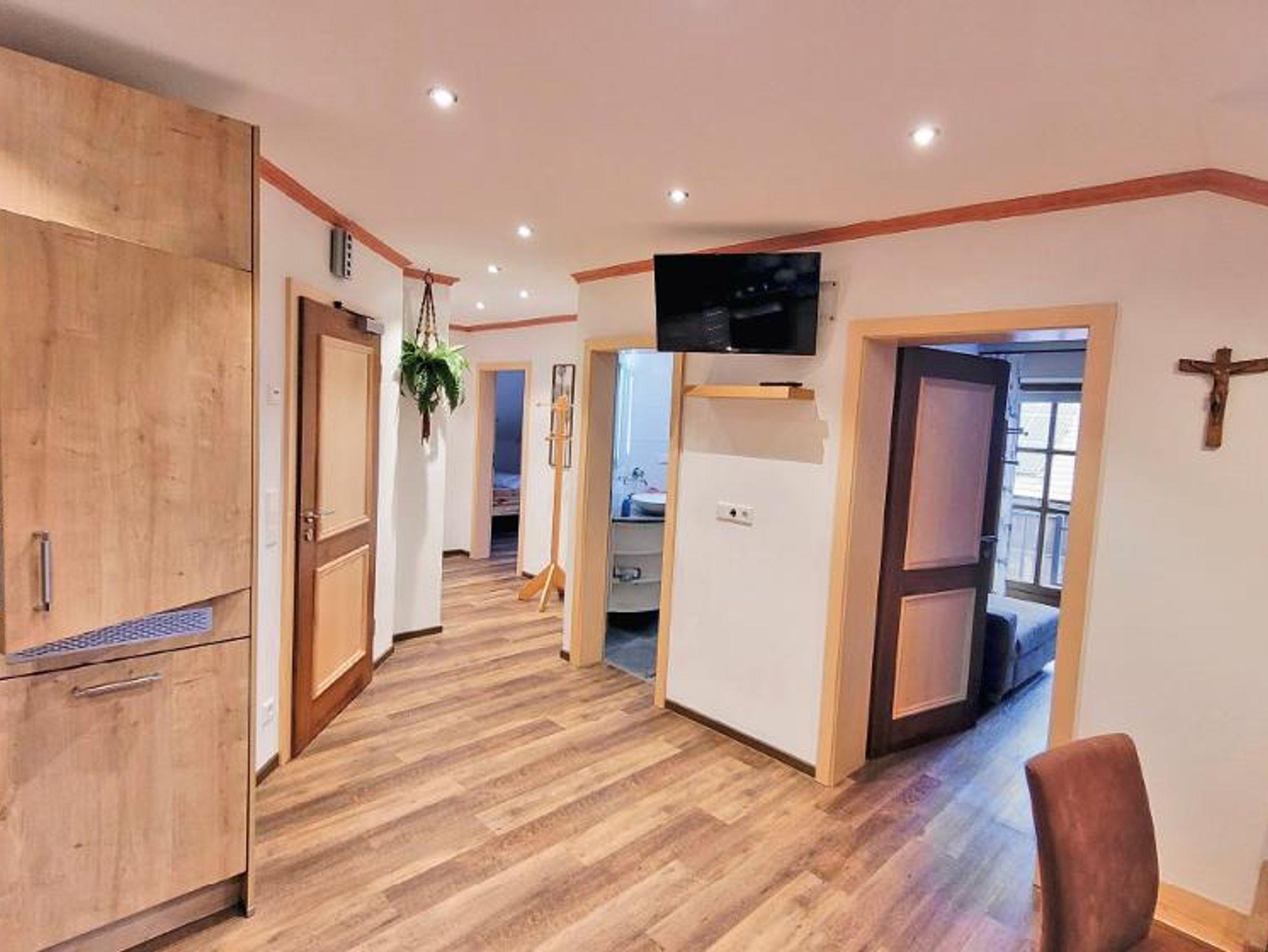 2 Fewos mit Wohnraum, Dusche/WC und 2 Schlafzimmer . Jede Fewo hat einen Balkon mit Blick auf den Spielplatz. Die Fewos sind im 2ten Stock, unterm Dach.
