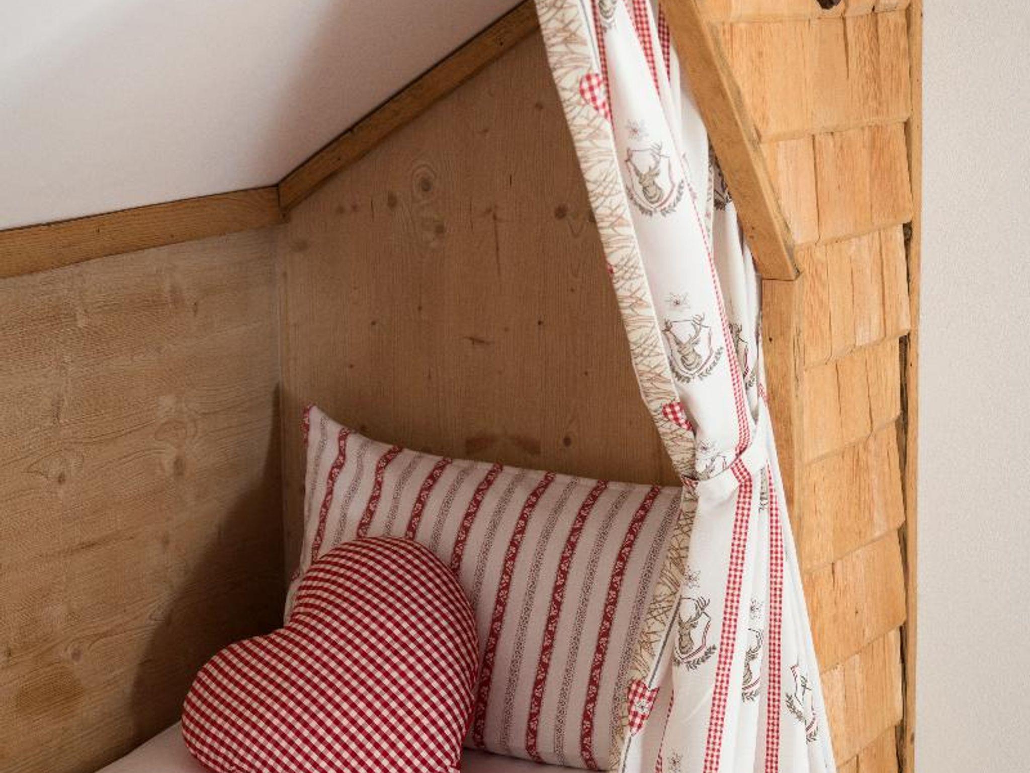 Erwachsenen sowie großem Panoramafenster. Die freigelegten, antiken Holzbalken und