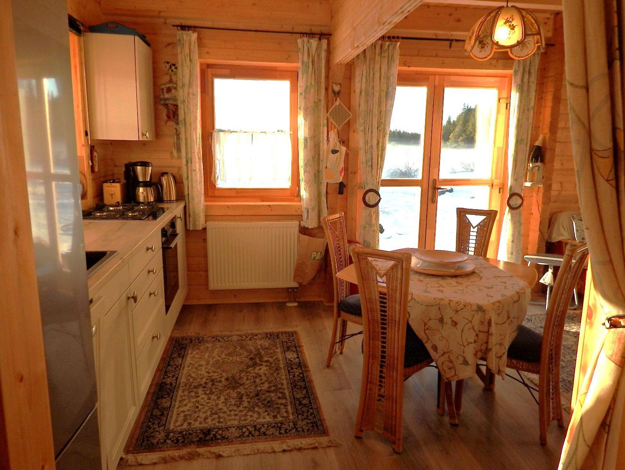 Wohnküche, Schlafzimmer, Dusche und WC. Mit einer voll ausgestatteten Küche mit Gasherd, Backofen, Kühl-/Gefrierkombination, einem gemütlichen Schwedenofen und Waschmaschine im Bad lässt es sich zu jeder Jahreszeit gut leben.