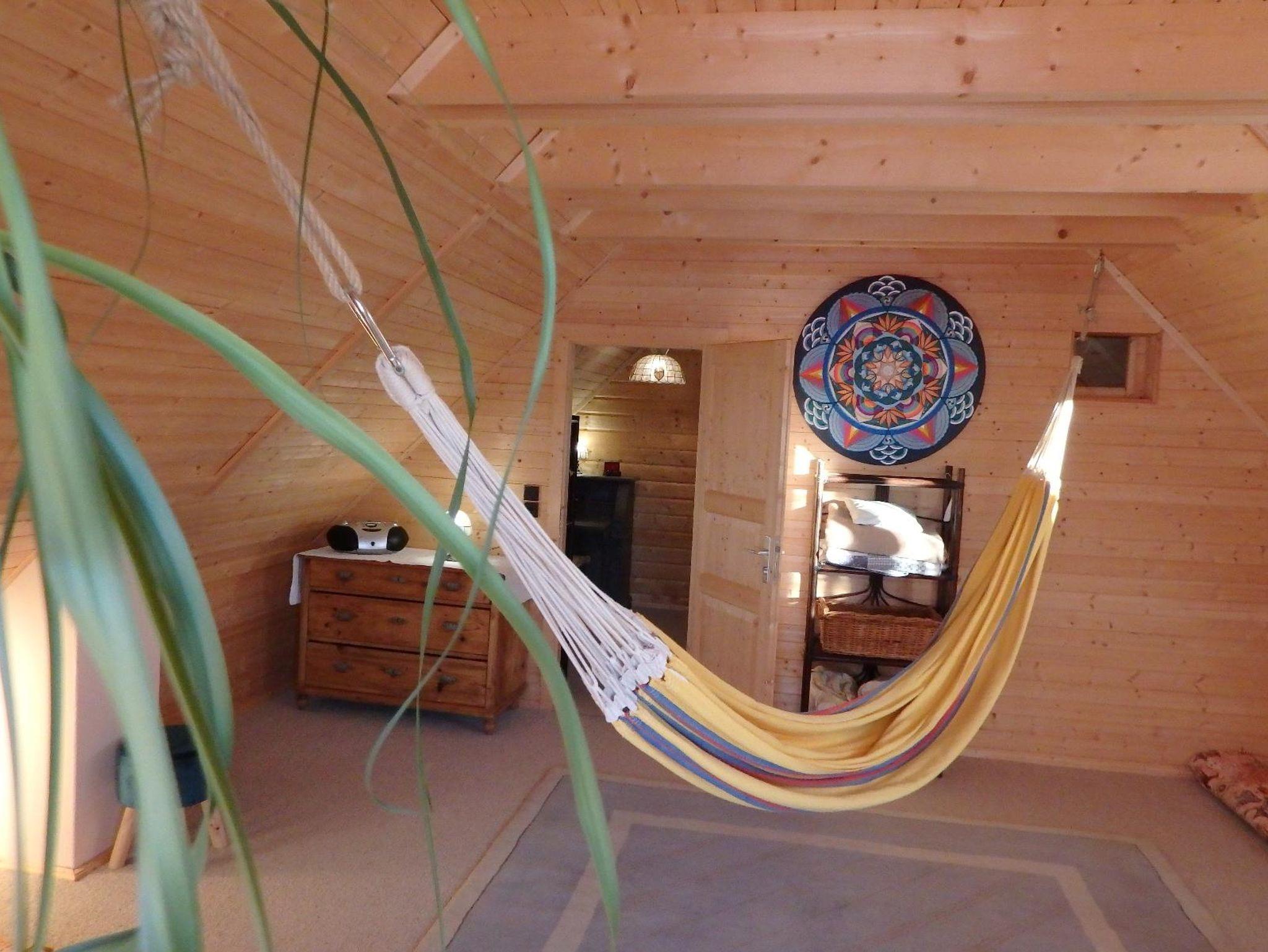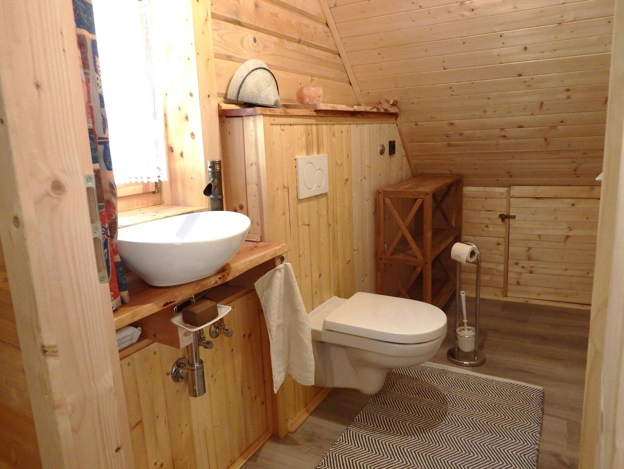 Der große Ruheraum im OG bietet dazu zwei Futons, auf denen ggf. zwei weitere Gäste Platz finden könnten. Ein sep. WC mit Waschbecken vervollständigt die Ausstattung.