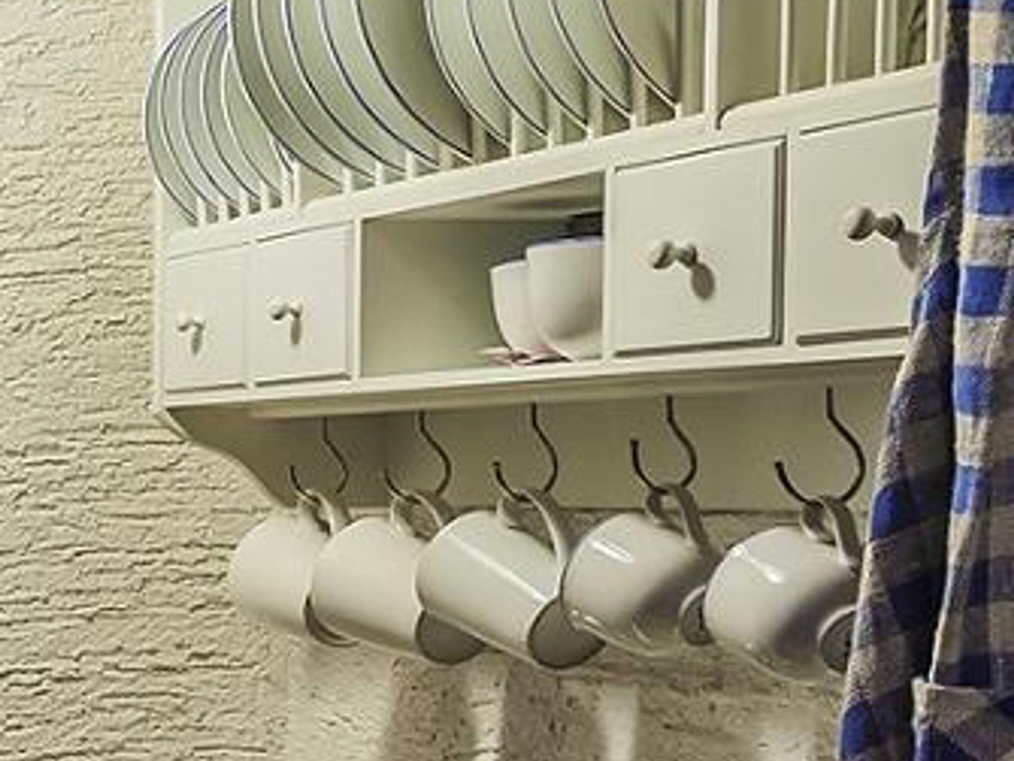 Das Sofa im Wohnbereich kann nachts als Bett (90 x 200) genutzt werden. Küchenblock bestehend aus Herd (zwei Platten), Kühlschrank, Spüle, Hängeschrank mit Kochtöpfen, Geschirrschrank, Pfanne, Schüsseln, Besteck, Kaffeemaschine. Im Schlafzimmer Naturholz-Doppelbett (180 x 200), Naturholz-Kleiderschrank. Bettwäsche im Stil der Wohnung wird gestellt. Dusche, WC und Waschbecken. Fön und Handtücher werden gestellt. Bademäntel auf Wunsch.