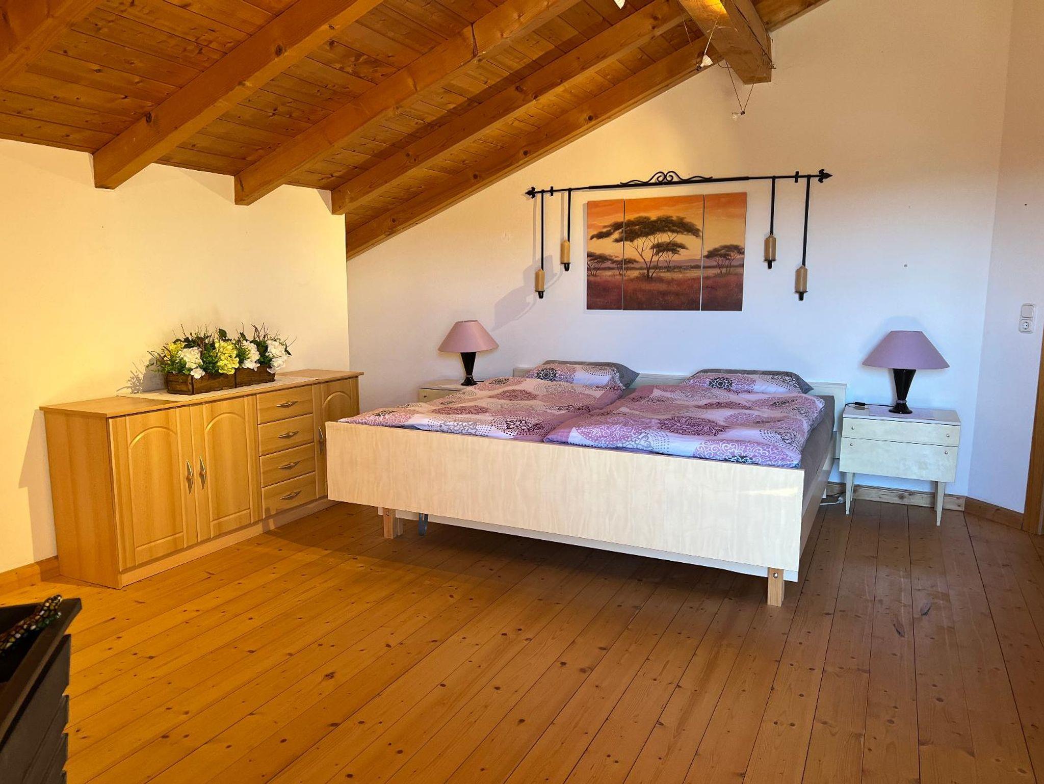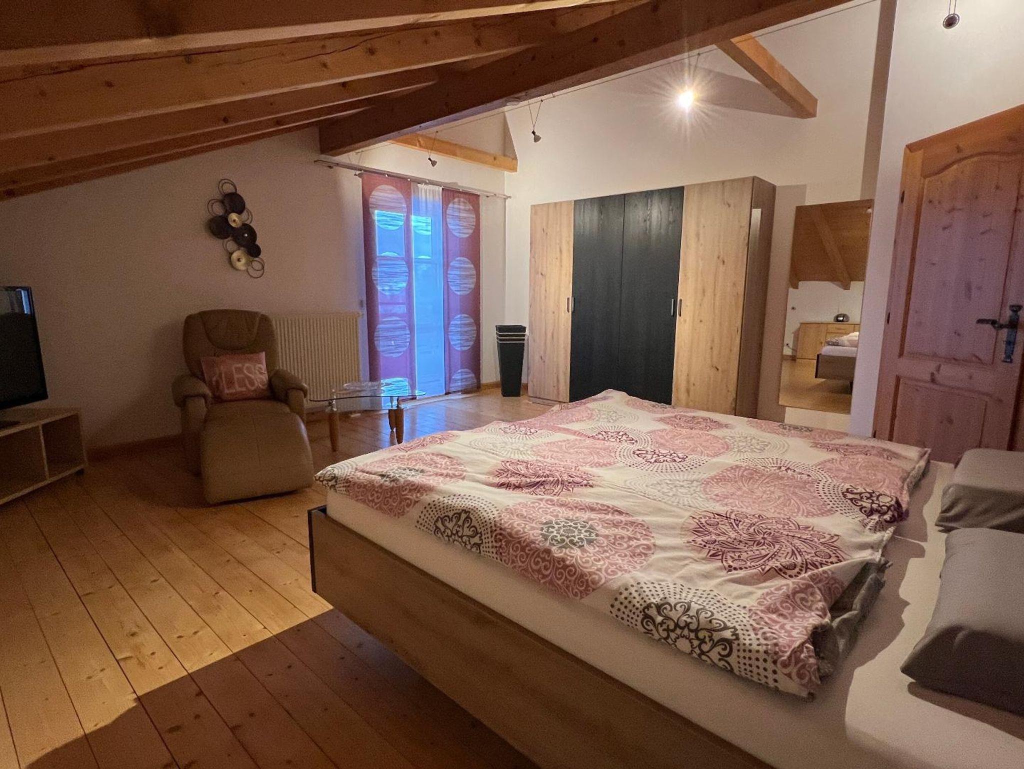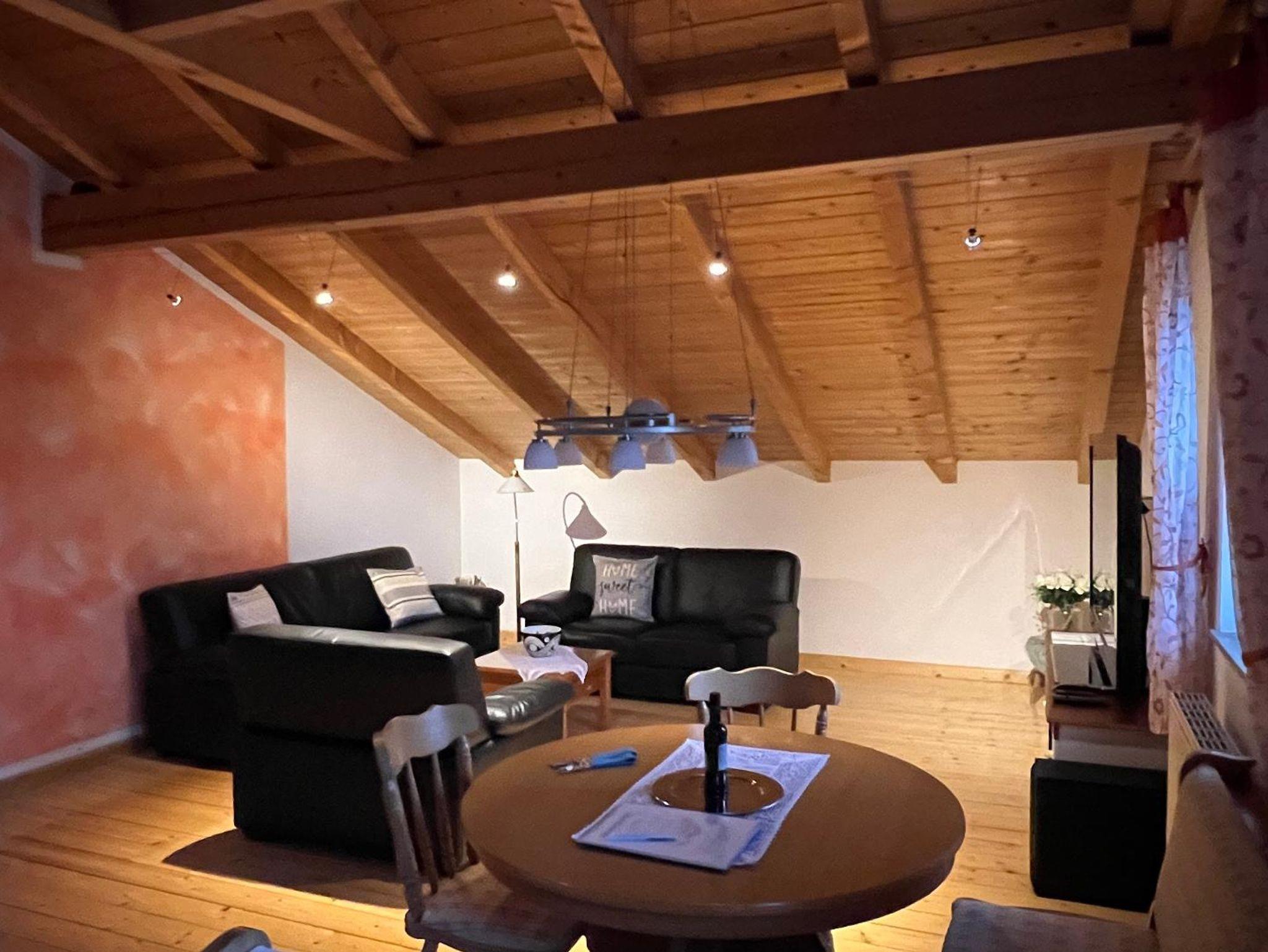 Die Ferienwohnung mit 105 m² Wohnfläche (Mansarde) im 1. Stock befindet sich im Haus der Vermieter und bietet Platz für 2-4 Personen und ein Babybeistellbett. Bei Bedarf steht ein Hochstuhl und das dazugehörige Maxi Cosi bereit.