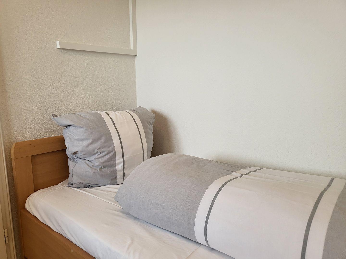 2,5 Zimmerwohnung mit Seeblick und Balkon,Strandkorb, Wohnnraum mit integrierter Küche, 1 Schlafnische mit Doppelbett 160x190 cm und ein weiteres Schlafzimmer mit Einzelbett, Duschbad mit WC, Nichtraucher, keine Haustiere erlaubt, WLAN