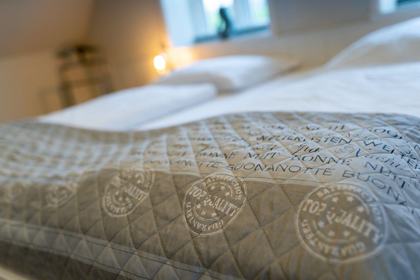 Eine Holztreppe führt Sie ins Obergeschoss, wo zwei weitere stilvoll eingerichtete Schlafzimmer mit komfortablen Doppelbetten (1x 200 x 210 cm + TV und 1x 160 x 200 cm) und ein weiteres Schlafzimmer mit einem Einzelbett (1x 100 x 200 cm) auf Sie warten. Ein geräumiges Badezimmer mit Dusche und Badewanne sorgt für zusätzlichen Komfort.