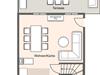 Die Küche wartet mit modernster Elektronik, darunter Geschirrspüler, Herd, Induktionskochfeld und Mikrowelle auf. Die hochwertige und umfangreiche Ausstattung an Geschirr, Besteck und Zubehör lässt keine Wünsche offen. Im Eingangsbereich befinden sich Spiegel und Garderobe, zusätzlich befindet sich im Erdgeschoss noch ein Badezimmer mit Toilette.