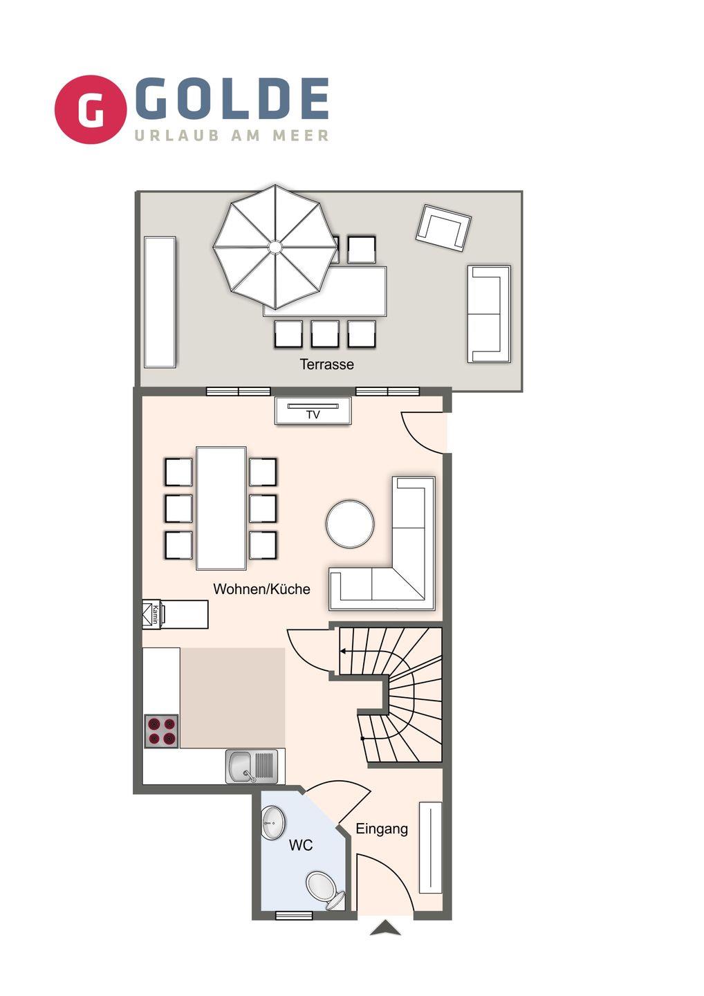 Die luxuriöse Haushälfte verfügt über ca. 109 m² Wohnfläche und bietet großzügigen Platz für 6 Personen.