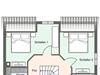 Im Dachgeschoss des Gebäudes finden zwei Einzelbetten sowie Sofa und Teppich Platz.