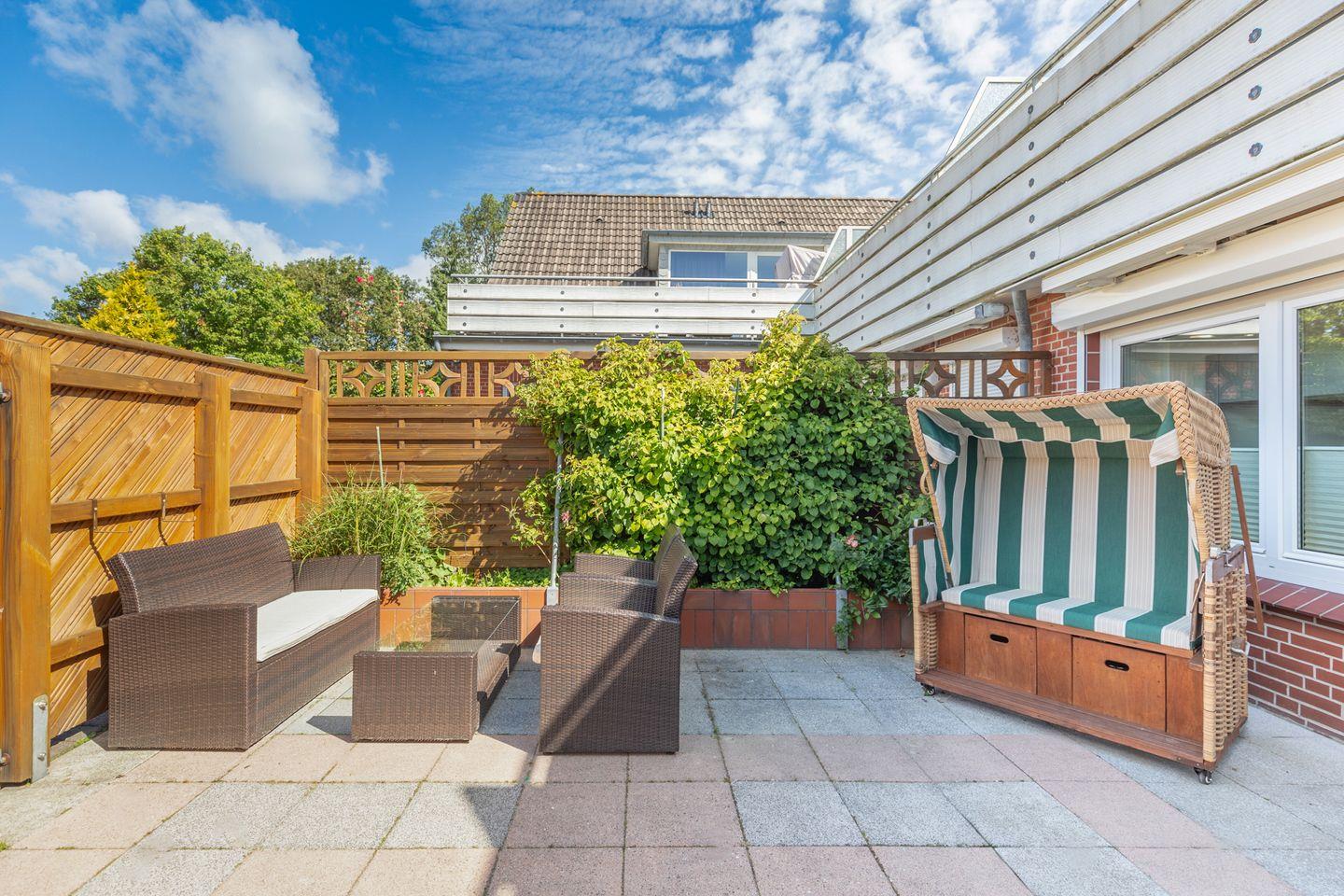 Je nach Tages- und Jahreszeit können Sie entweder die geschützte West- oder die Ostterrasse nutzen. Die Ostseite bietet Ihnen eine gemütliche Sitzecke mit Strandkorb auf der Westseite. Die Westterrasse wird gemeinsam mit der Ferienwohnung „Kleiner Sandloper“ genutzt.