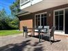 Vom Wohn-Essbereich gelangen Sie zur Terrasse in südöstlicher Ausrichtung, ausgestattet mit gemütlichen Gartenmöbeln und Sonnenschirm. Der Garten bietet eine Rasenfläche, angelegte Wege und einen Friesenwall.