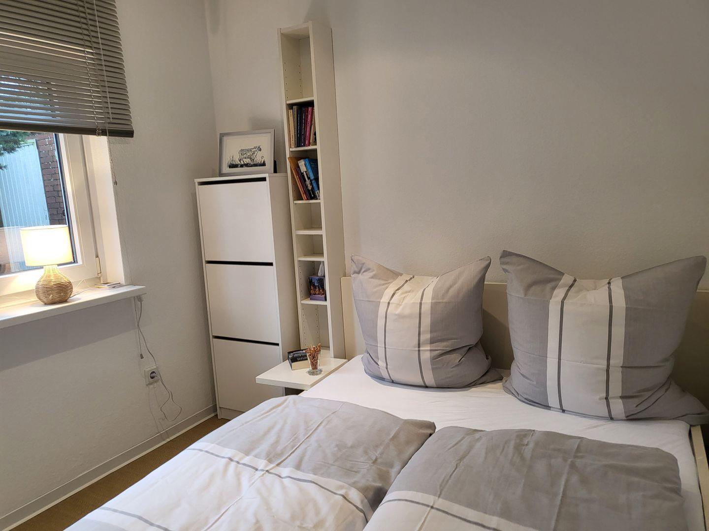 2-Zimmerwohnung im Erdgeschoß mit Terrasse, Schlafzimmer mit kleinem Doppelbett, Küchenzeile, Wohnzimmer mit Esstisch und einem Schlafsofa, keine Tiere, Nichtraucher, PKW-Stellplatz und Fahrradabstellmögichkeit in der Garage