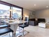 Das modern eingerichtete Wohnzimmer wirkt durch die große Fensterfront und den Übergang zum Balkon wunderbar hell und freundlich. Zur Ausstattung gehören hier eine urgemütliche Couch und der große Esstisch, an dem die ganze Familie Platz findet. Die komfortable Couch lässt sich zum komfortablen Schlafplatz für 2 Personen umfunktionieren. Die multimediale Unterhaltung sorgen ein großer Flachbild-TV, Radio mit Bluetooth und kostenfreies W-LAN.