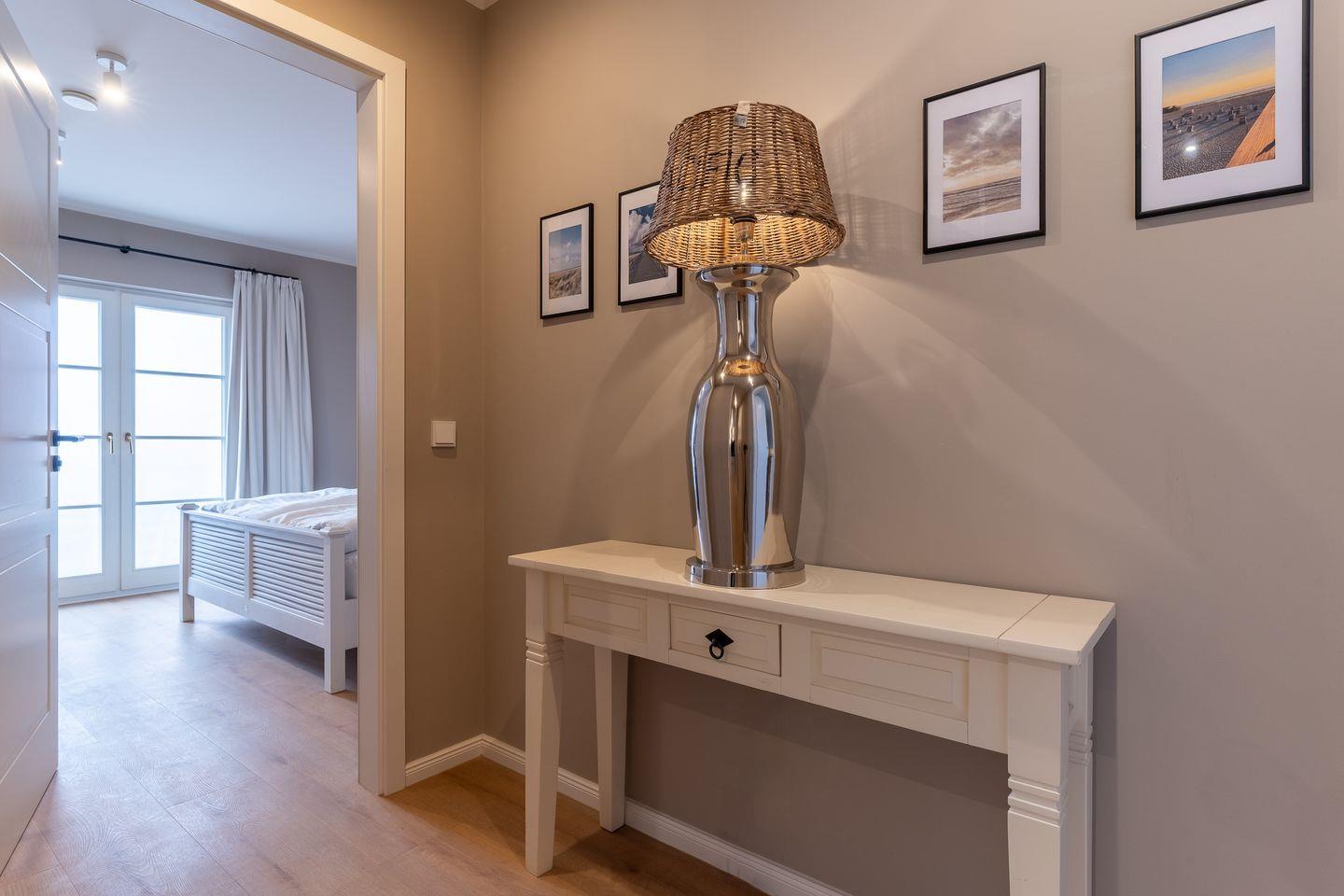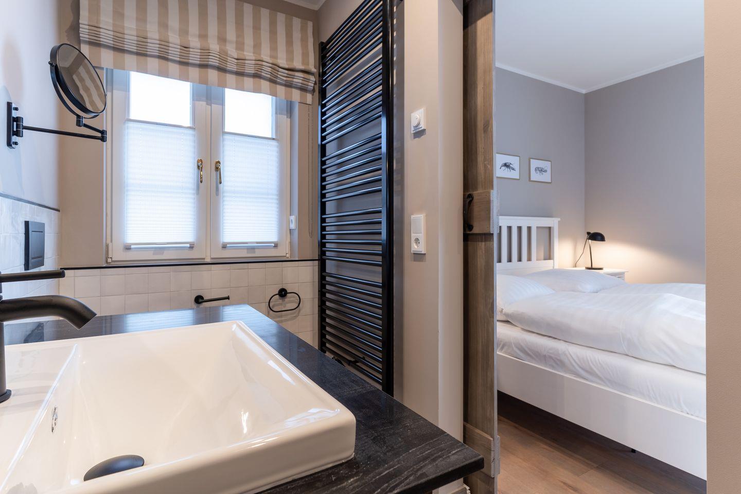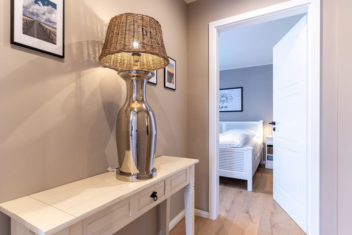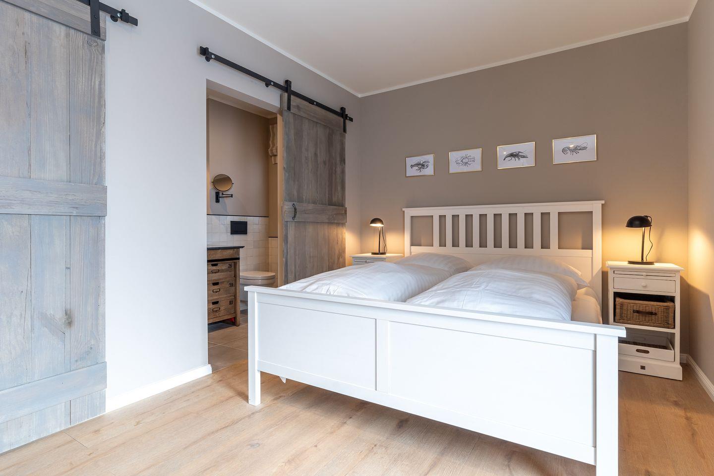 Angrenzend befinden sich die beiden weiteren Schlafzimmer, die ebenfalls über ein Doppelbett, einen TV sowie ein Ankleidezimmer verfügen. Die Zimmer sind hell und freundlich mit stilvollen Möbeln eingerichtet.