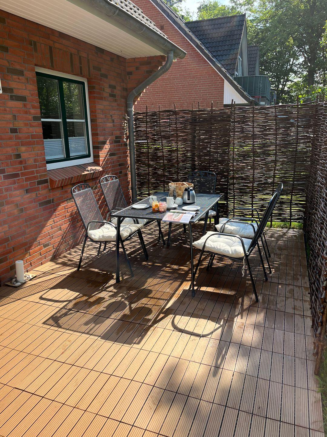 Vom Wohnzimmer aus gelangen Sie direkt auf die Terrasse, wo Sie die frische Luft genießen und die Sonne tanken können. Verbringen Sie gemütliche Abende bei einem Glas Wein oder starten Sie den Tag mit einem entspannten Frühstück im Freien.