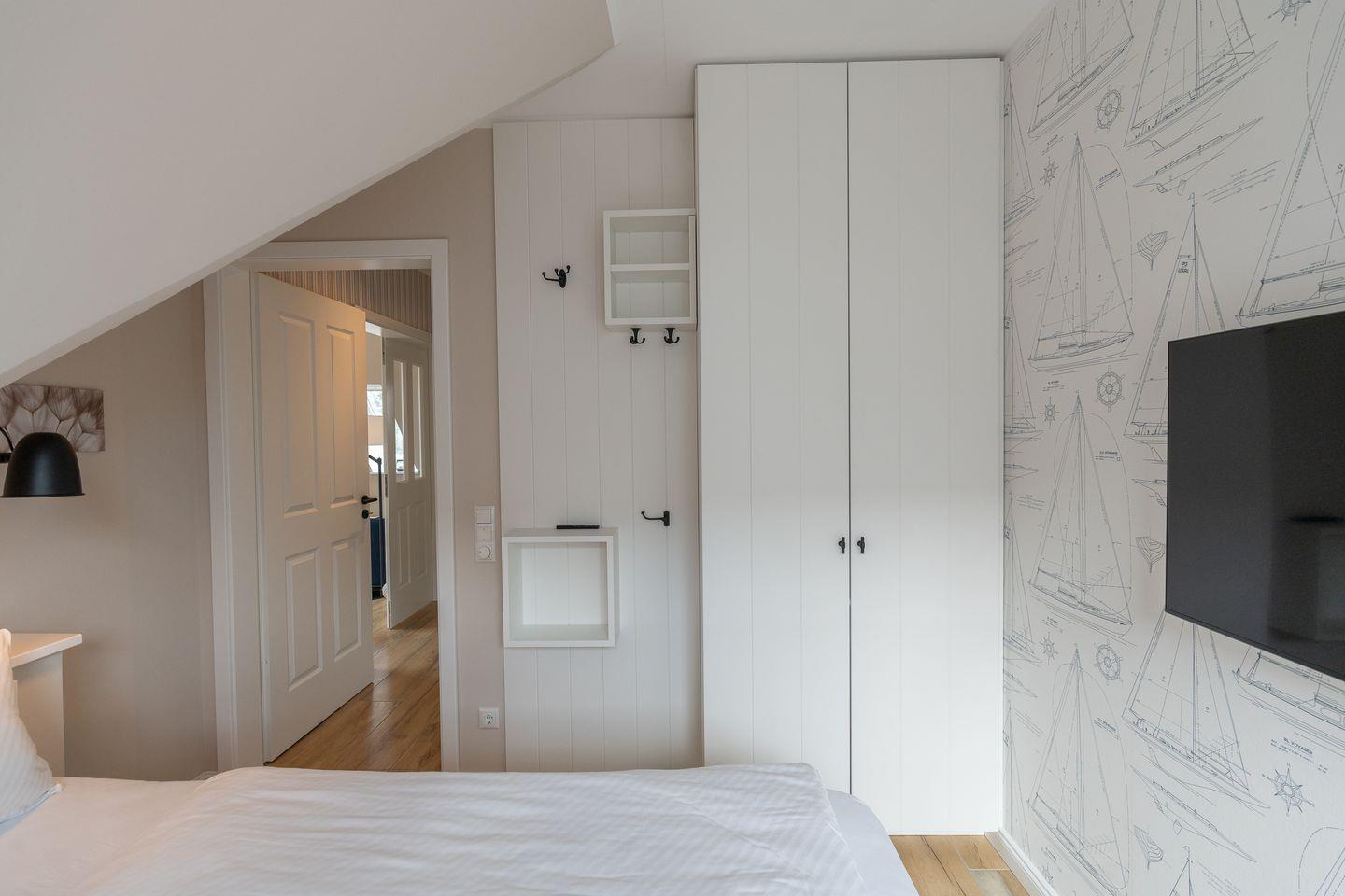 Ihre wunderschöne Ferienwohnung mit Fußbodenheizung und Aussenjalousien im Obergeschoss ist mit einer Fläche von ca. 50 qm ausgestattet und lädt ein das Frühstück auf der separaten Terrasse am Haus zu genießen. Vom Französischen Balkon aus haben Sie einen Blick auf den Deich und können direkt den Strand von St. Peter-Ording spüren. Der helle Wohnbereich der Wohnung ist mit einem Schlafsofa 1,60 x 2,00 Meter, einem Couchtisch und einem Esstisch mit 4 Stühlen ausgestattet. Am Haus befindet sich eine eigene Terrasse für die Wohnung Över`n Diek. Hier steht ein kleiner Tisch mit 2 Stühlen und ein Strandkorb für Sie bereit. Die Küchenzeile bietet ein Cerankochfeld, Geschirrspüler, Geschirr, Kaffeemaschine, Kühlschrank, Toaster, Wasserkocher und Backfunktion. Das Schlafzimmer verfügt über ein Doppelbett und einen Fernseher. Ebenso gehören ein Flur mit Garderobe und großem Spiegel sowie ein Badezimmer mit bodengleicher Dusche, Waschbecken, elektrischer Handtuchheizung und WC zur Ausstattung. Zur Unterhaltung gibt es einen Internet-TV Flachbildschirm, Bluetooth-Lautsprecher und kostenloses WLAN. In nur 8 Fahrradminuten erreichen Sie einen Supermarkt mit Bäcker und Discounter. Die Bushaltestelle ist fußläufig. Ein Parkplatz für Ihr Auto befindet sich auf dem Grundstück.