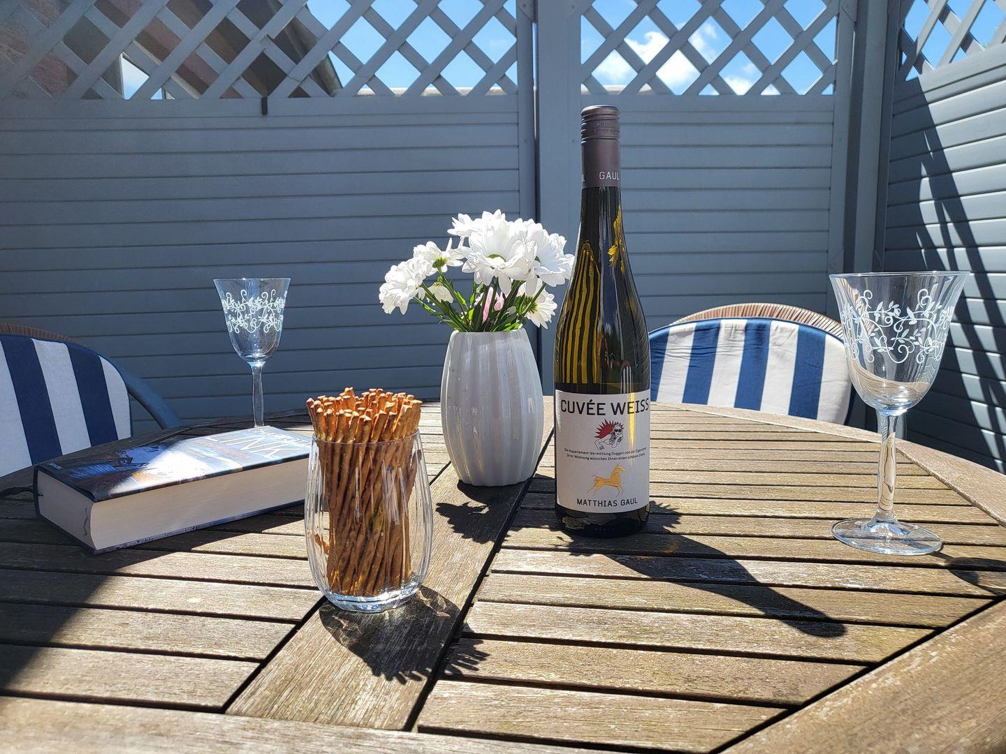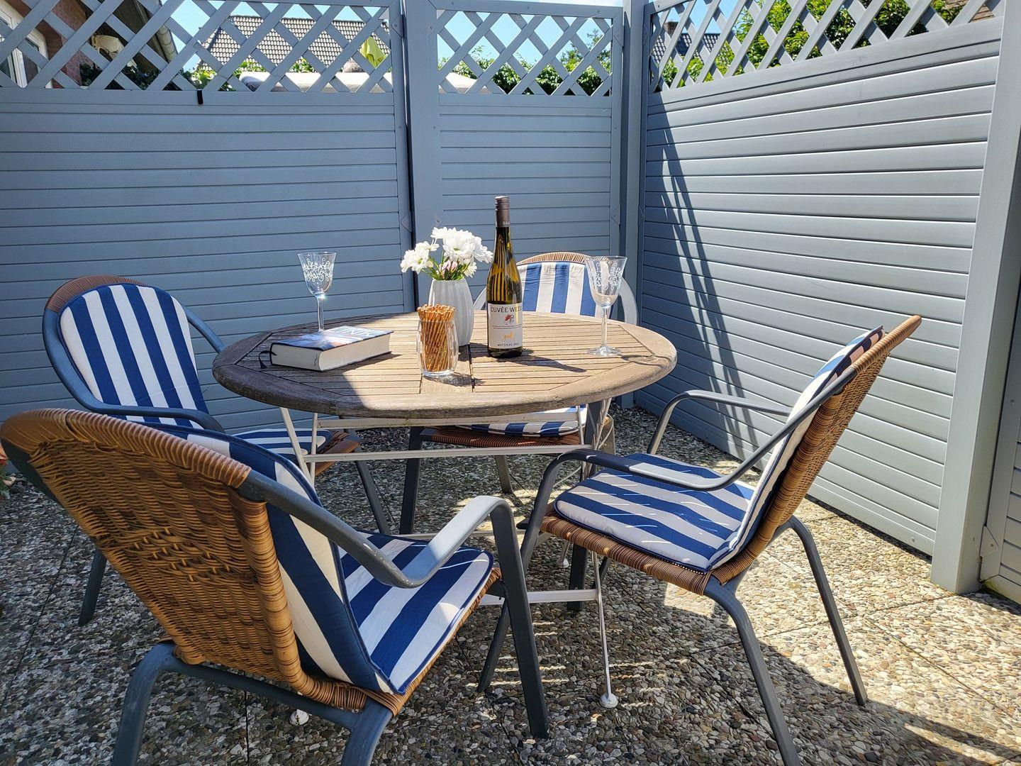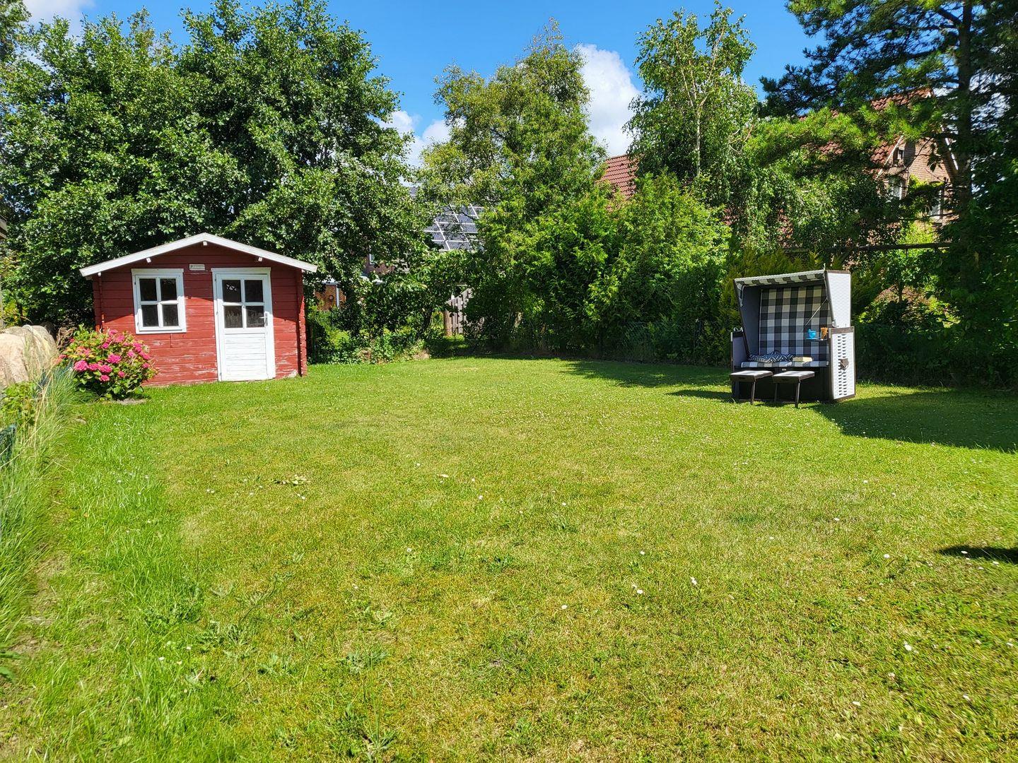 Ein Strandkorb und Gartenmöbel sind ausreichend vorhanden.