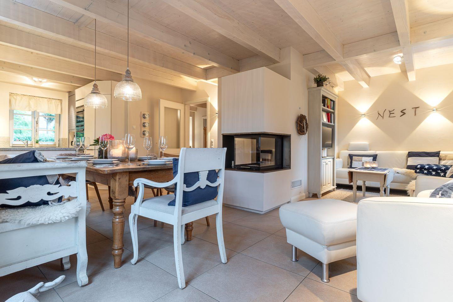 Mitten im urigen Dorfkern liegt das Ferienhaus "Nest & Meer" und lädt mit seiner geschmackvollen und detailverliebten Wohnatmosphäre zu einem unvergesslichen Urlaub ein. In nur wenigen Schritten erreichen Sie verschiedene Einkaufsmöglichkeiten und Restaurants, sowie den Deich und Dünen. Das Domizil selbst besticht durch einen gekonnten Mix aus modernem Chic und Antiquitäten. Eine Prüfung des deutschen Tourismusverbands ergab die Einstufung des Objekts in die Kategorie "5 Sterne".