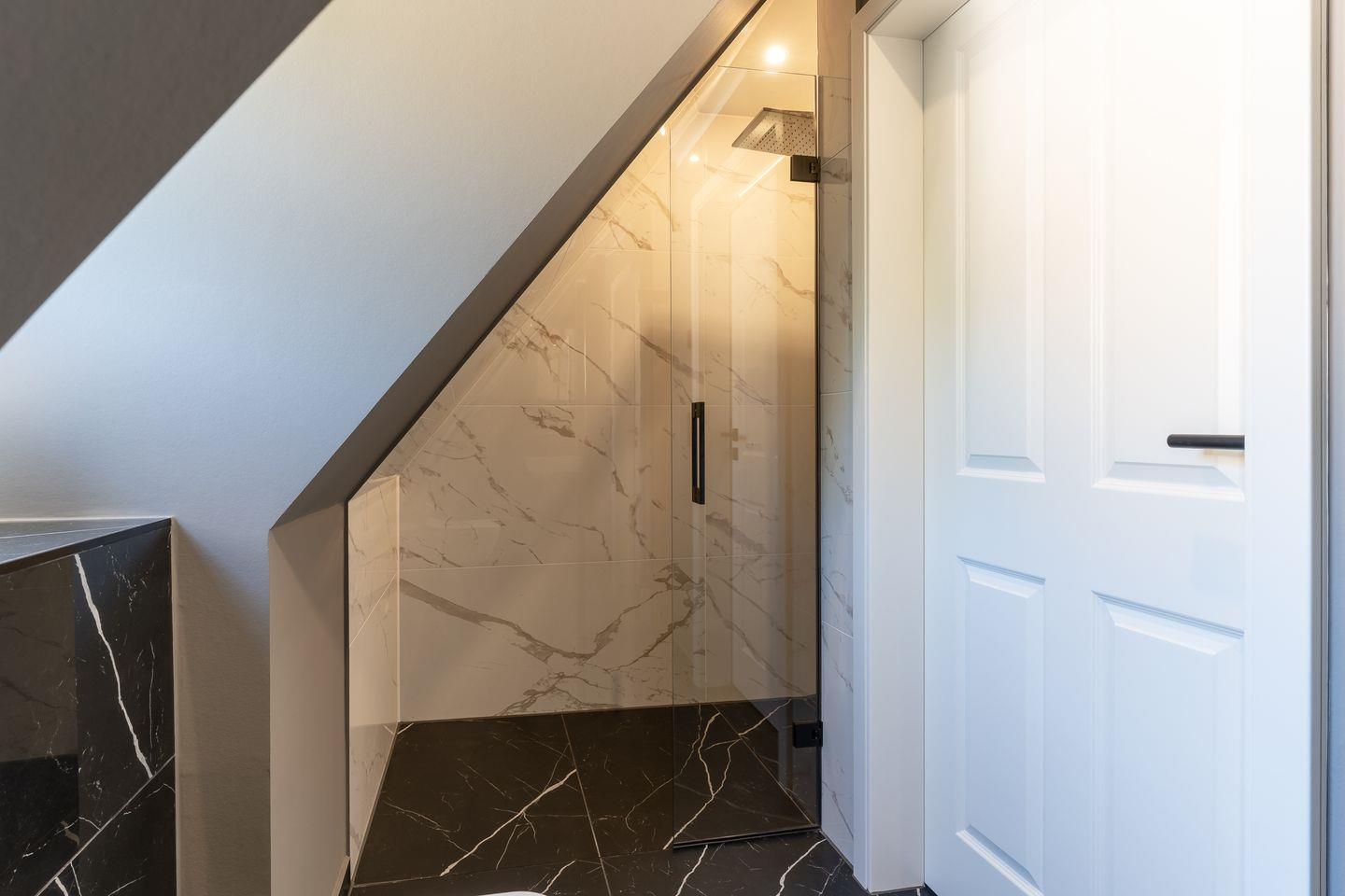 Ein vollausgestattetes Badezimmer im OG mit einer Dusche runden das hochwertige Hauskonzept ab und lassen keine Wünsche offen.