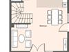 Über eine Holztreppe gelangt man in das Obergeschoss.