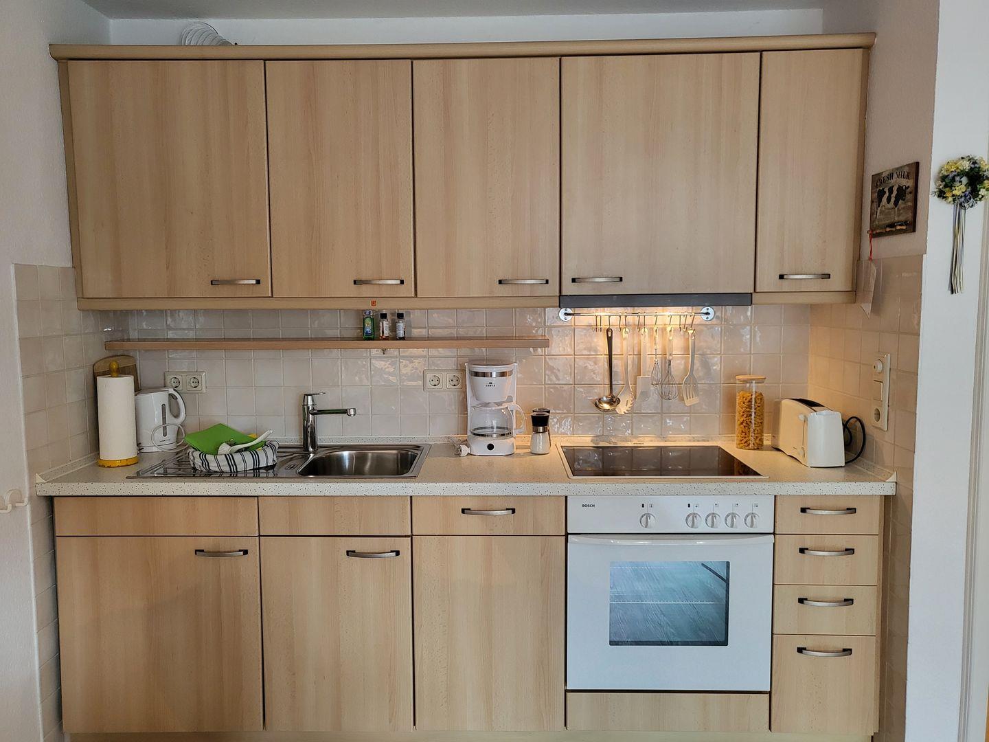 Gemeinsam mit dem Badezimmer, das mit Dusche und Badewanne ausgestattet ist, bietet die Wohnung allen Komfort, den Sie für einen entspannten Aufenthalt benötigen.