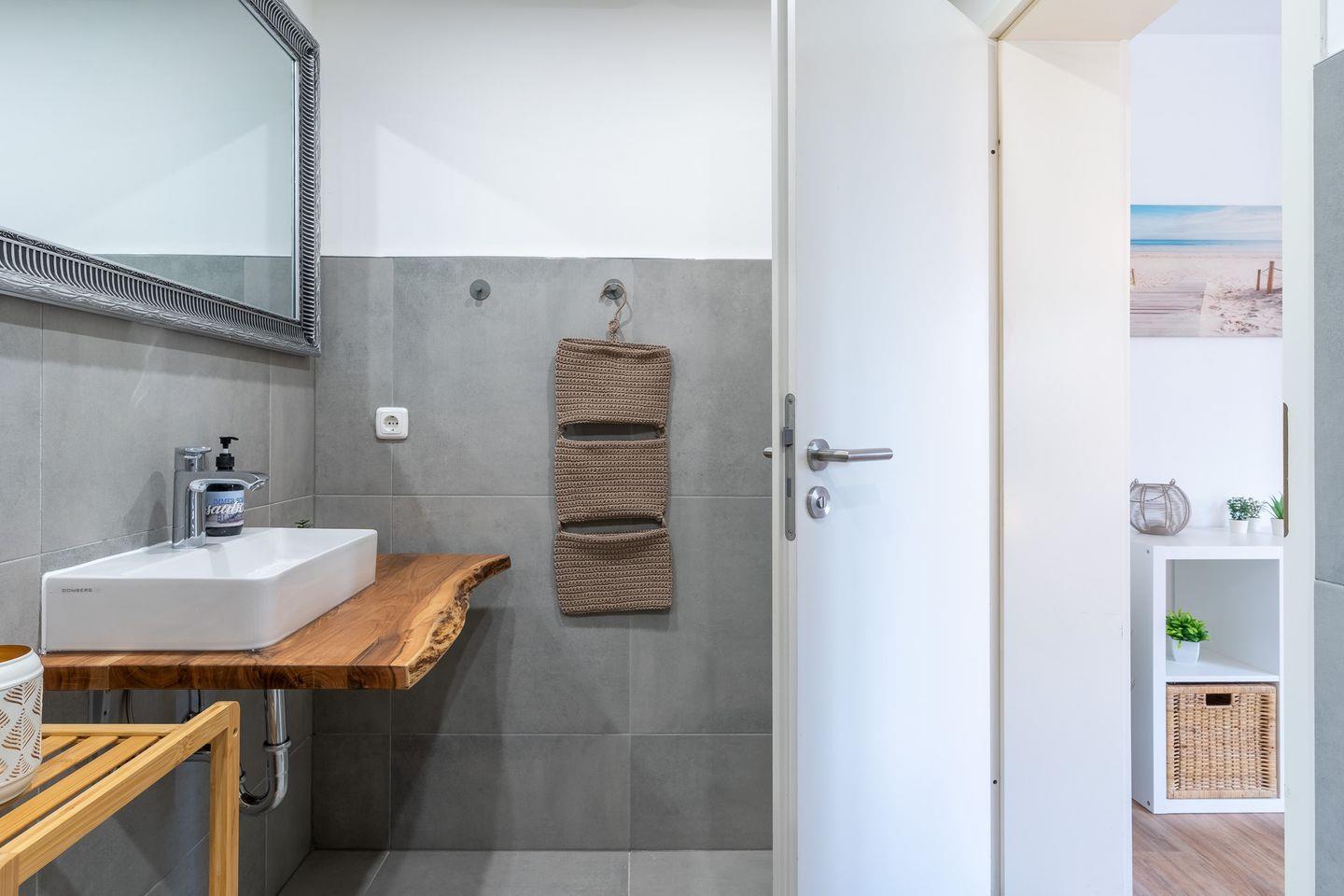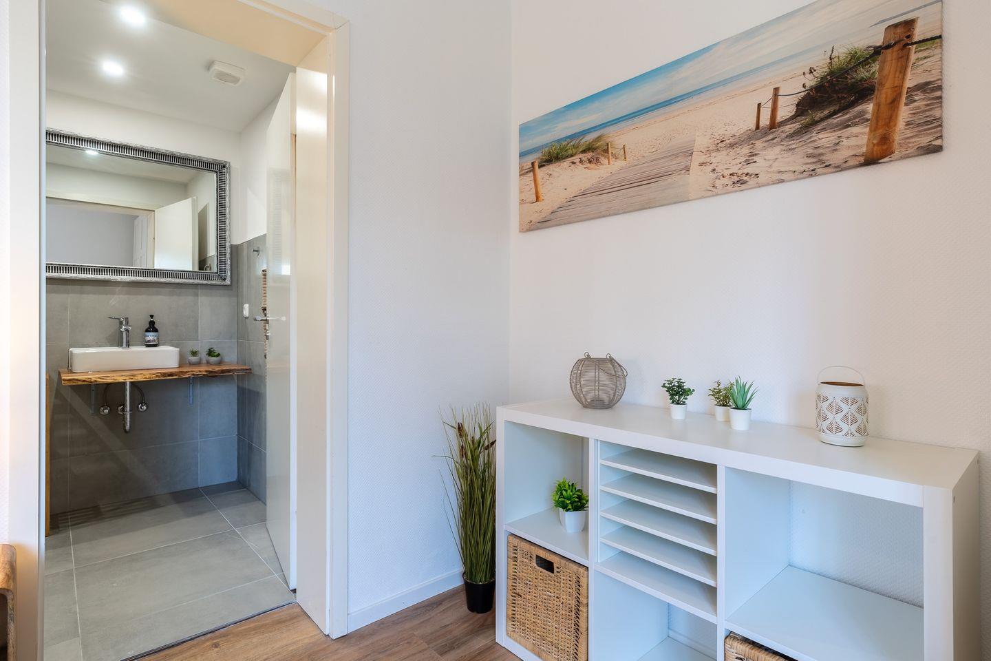 Der Wohnraum bietet zudem eine komfortable Couch und einen Essplatz für zwei Personen – perfekt für gesellige Abende. Das großzügige und komlett neu gestaltete Badezimmer mit Walk-in Dusche, Handtuchwärmer und Haartrockner lädt dazu ein, nach einem langen Strandspaziergang zu entspannen.