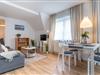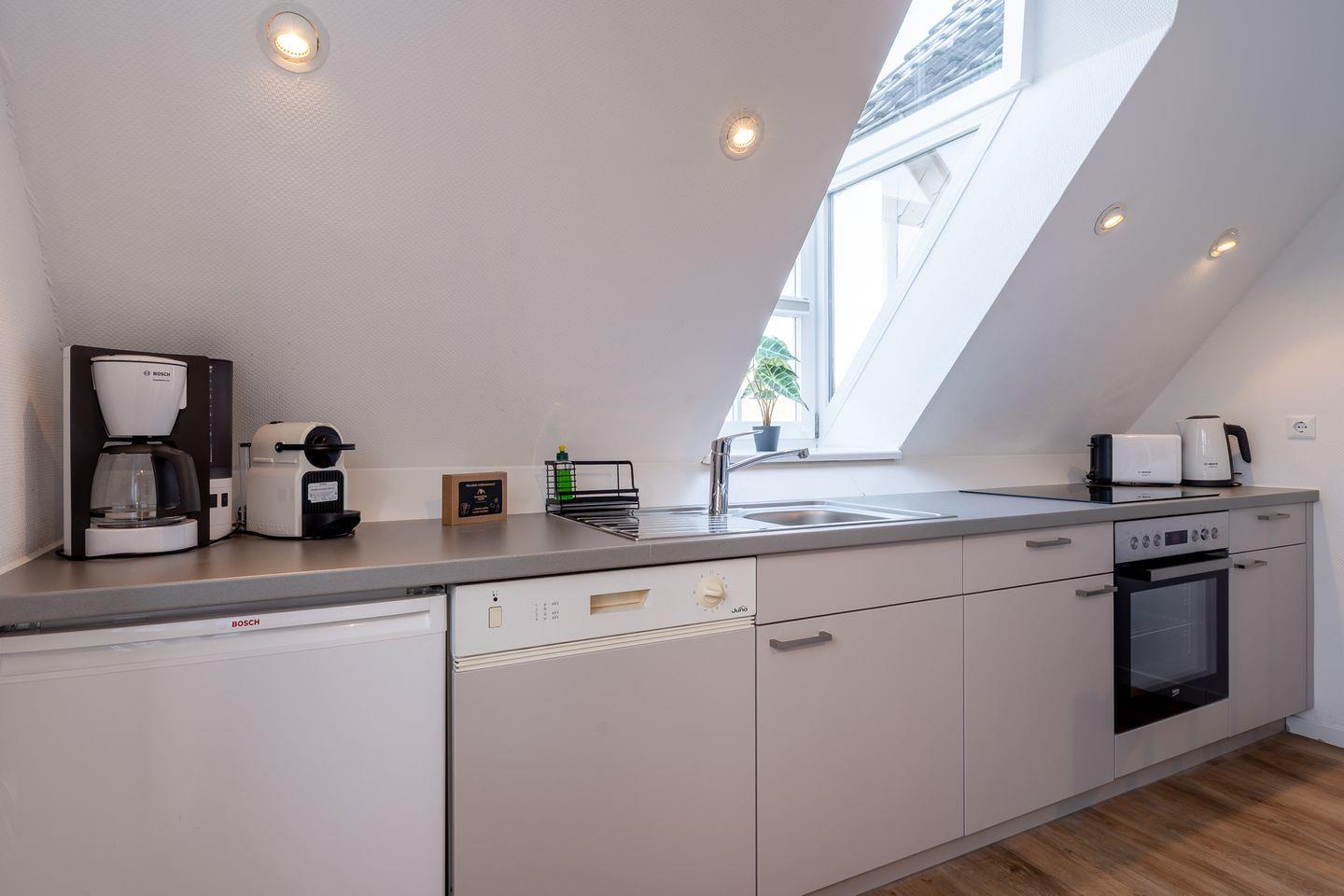 Das Wohnzimmer lädt mit einem gemütlichen Sofa zum Entspannen ein und verfügt über eine integrierte, moderne Küchenzeile. Diese ist bestens ausgestattet mit einem Geschirrspüler, Backofen und allen notwendigen Küchenutensilien, die Sie für die Zubereitung köstlicher Mahlzeiten benötigen. Hier können Sie nach Herzenslust kochen und gemeinsam genießen.