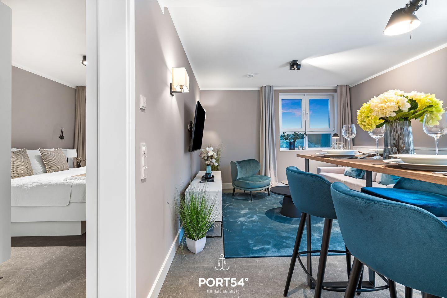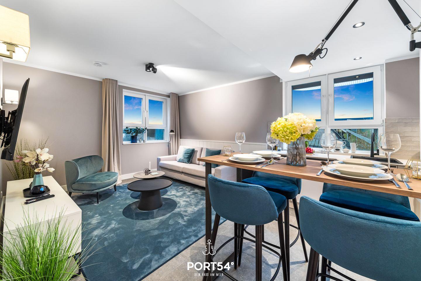 Die im Souterrain gelegene Wohnung „Abtauchen“ bietet auf 45 m² ausreichend Platz für einen erholsamen Nordseeurlaub im Ortsteil Bad und bleibt auch an warmen Sommertagen angenehm kühl. Neben dem offenen Schlafbereich mit Doppelbett (180 × 200 cm) verfügt die Wohnung über eine voll ausgestattete, offene Küche mit angrenzendem Essbereich sowie einen Wohnbereich mit gemütlichem Sofa, TV und kostenfreiem WLAN und ein Badezimmer mit Dusche.